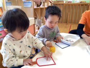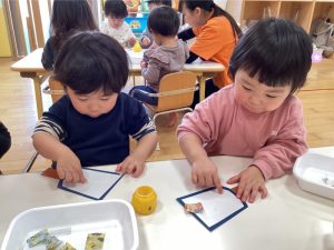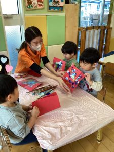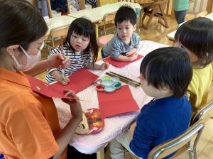出来上がると友だちや保育者に見て見てと見せに来てくれる姿がありました☺️❤️