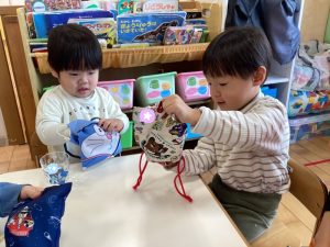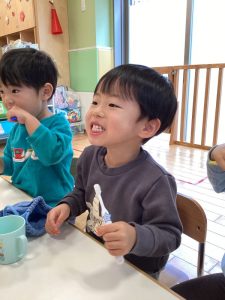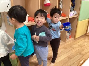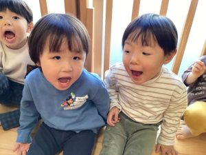 久しぶりの登園に少し戸惑う姿もありましたが、元気いっぱいに登園してくれました✨「おもち食べたよ🤤😋」「おじいちゃんやおばちゃんに会ったよ👴🧓」など、園内はお正月の話で賑わっていました🎍