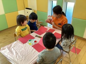続いてりんご組さんはだるまを作りました☝️💙🧡