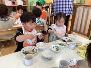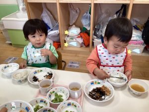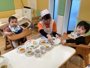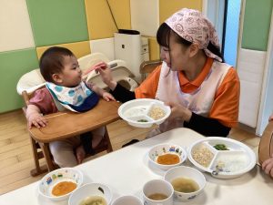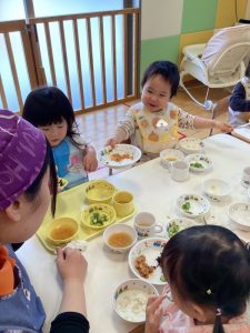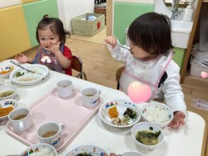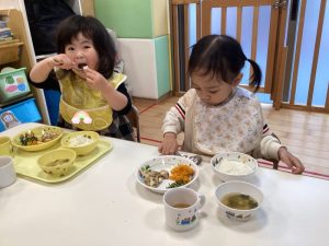 1.2歳児さんもスプーンを持って、自分で食べ進めています🎶