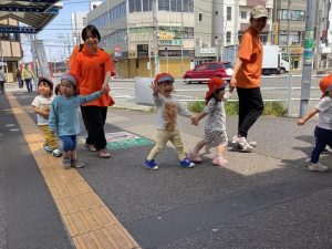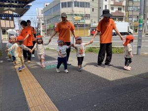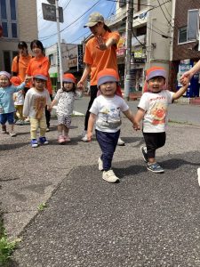 友達と手を繋いで歩くのがとても上手なりんご組さんです😆👏