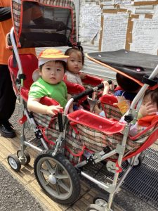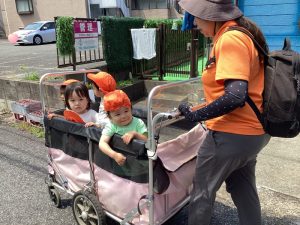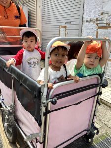 いちご組さん、もも組さんもバギーを使って散歩へ行に行きます❣️