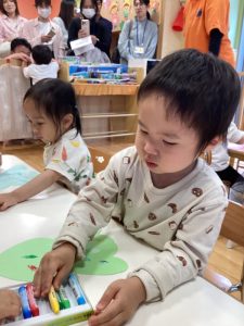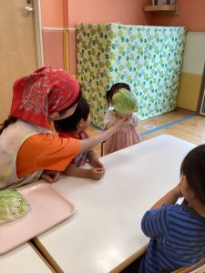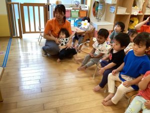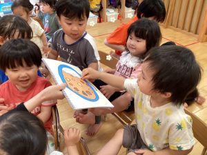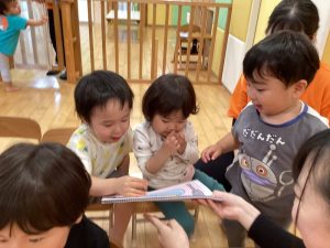 保育者の問いかけを聞いて口々に答えてくれました✨