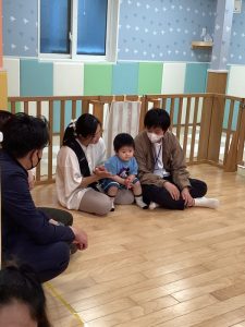 保育園にお家の方が来てくれることを伝えると「もう少しかな?」と少しソワソワした雰囲気でエントランスの方を見ていました👀