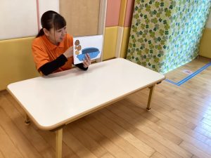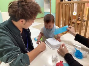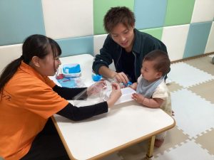 最初はなんだろう?と不思議そうに見ていた子もお友達が楽しそうに触る様子を見るとゆっくり手を伸ばして一緒に楽しむことができていました💗