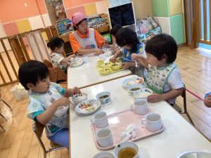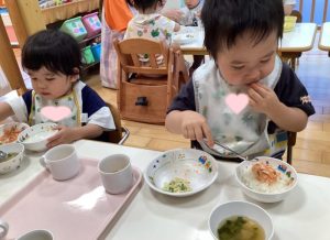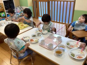 🎶さっきまで歌を歌っていた子も、お友達とお喋りが止まらなかった子も、探検中の子も、お給食が始まると、一生懸命食べ進めてくれます☺️💓