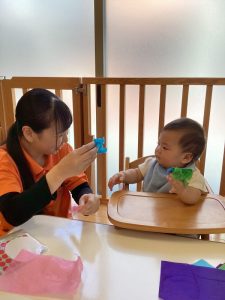 5月に花紙を触った時はとっても不思議そうな顔をしていましたが、今回は最後まで花紙に夢中でなかなか離してくれませんでした😊💗