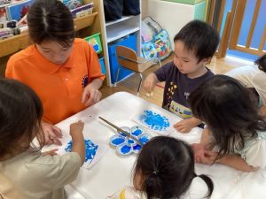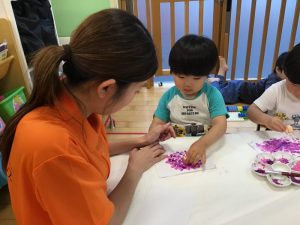 👦🏻「スタンプするの楽しい😆」「色付いた!」「綺麗だねー😍」と話していました🎶