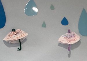 👩🏫「今日はみんなで傘を作るよ☂️好きな色で絵を描いてみよう🎨」