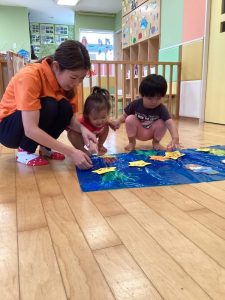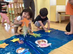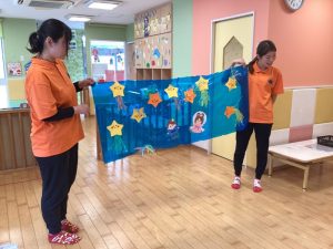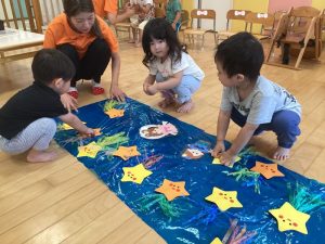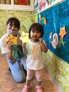 みんなでお星様を探しに行き、彦星さんと織姫さんがいる天の川にお星様を貼っていきます✨
