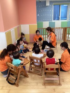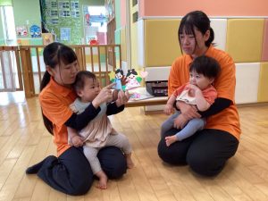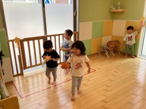 💁🏻♀️「タライの周りでは歩こうね👣」「お友達と順番でおもちゃを使おうね!」