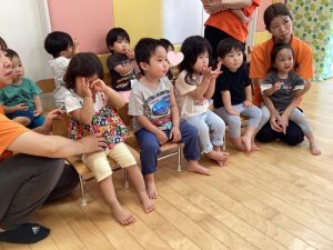 水遊び開きでは、先生から水遊びの約束事や着替えの方法、みんなで楽しく仲良く遊びましょうとお話がありました✨