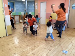 表現活動では、7月は「あめ・うみ」の歌をもとにピアノの音に合わせて身体を動かします🌈