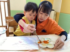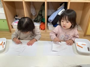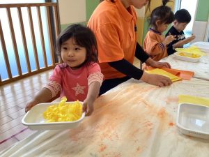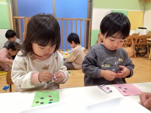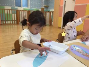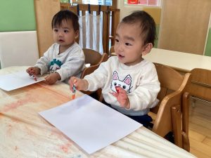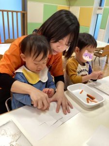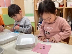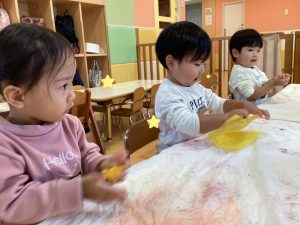 👆人差し指を使ってとても慎重に塗っている子やダイナミックにや両手を使って頑張って塗っている子もいました☺️💕
