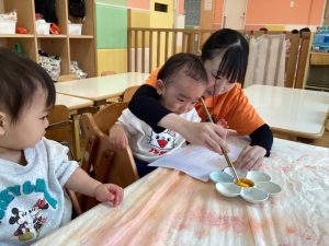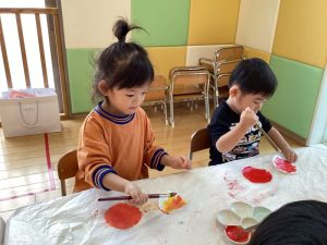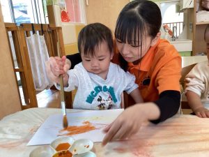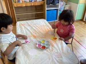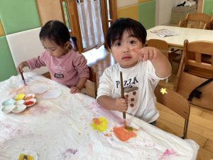 絵の具でぬりぬり、楽しいね😊💕