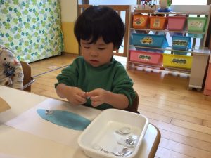 次は、絵の具を使ってみのむし君のお洋服作りです🎨