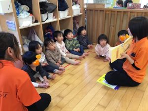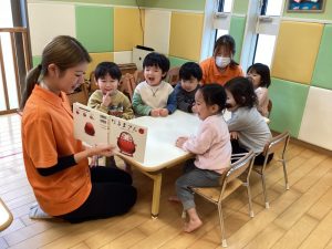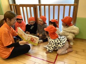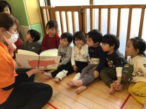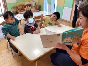 じーっと絵本に集中したり先生の声の強弱を真似して話してみたりと夢中な子ども達🥰