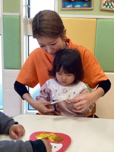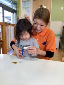 出来上がると友だちや先生に「見て見て!」と見せに来てくれる姿がありました☺️❤️