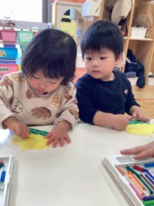 りんご組さんは鬼の顔をクーピーで描きましたよ🖍️✨