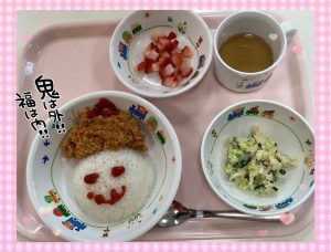 可愛らしい「👹節分キーマカレー🍛」に大喜び💕