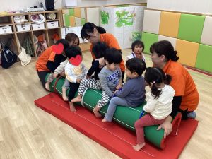 トンネルにしてくぐったり座ったり、でんぐり返りしたり体の動かし方も上手くなっています!!