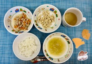 今日は、誕生日会を行い10月生まれの子のお祝いをしました♪給食は、大人気の鶏のから揚げ♪「もっとたべたーい!」とたくさん食べてくれました♪