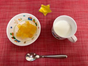 今日は、ローストチキンでした。「お野菜のスープも全部食べれたよ♪」と嬉しそうに教えてくれました!(^^)!苦手な野菜も保育者の声掛けやお友だちが食べているのを見て食べてみよう!と思い、チャレンジしている姿が見受けられます。