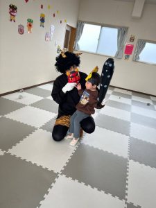 お部屋に来た鬼は、園長先生で、みんなひと安心でした😄