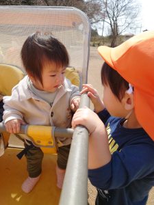 泣いているももぐみのお友達の近くにそっと寄り添ってくれるりんごぐみのお友達など、ほっこりする姿も見られます🥰