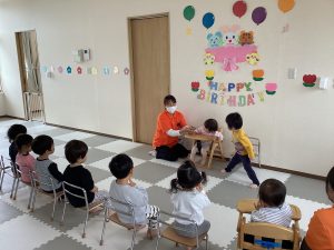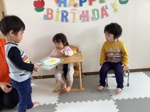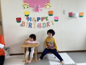 4月はももぐみさんの女の子と、りんごぐみさんの男の子が1歳と3歳の誕生日を迎えました🎊