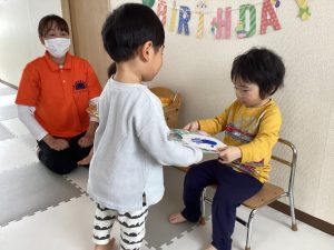 お友達から誕生カードをプレゼントしてもらい、たくさん拍手されると2