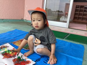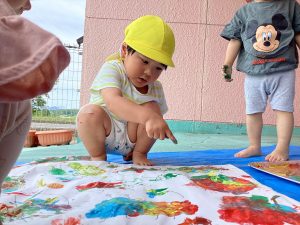 大好きなてんとう虫や蝶に色をつけたくて、いろんな色を使って指スタンプに集中して、感触も楽しんでいました🎨