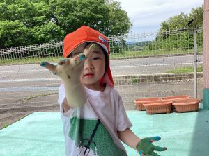 と、ビックリするお友達や、「やった~😆」と喜んで積極的なお友達、「いやーっ!」と触るのを嫌がるお友達など、反応は様々でした✨