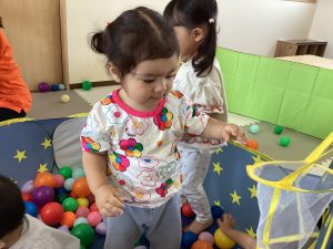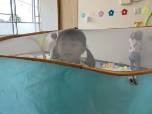 「ざぶーん!」とボールプールに飛び込んだり、プールの網に顔をつけて「ねぇ、先生~」と呼んでみたり、遊び方も様々です✨