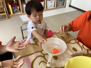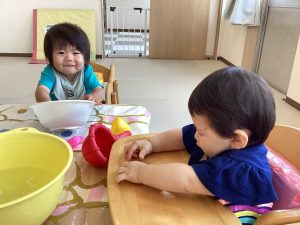 毎日暑い日が続き、なかなか戸外遊びができない日もあります💦