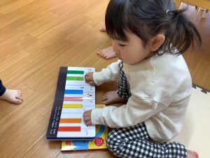 絵本の中のだるまさんと一緒に体をゆらりゆらり( ´艸`)