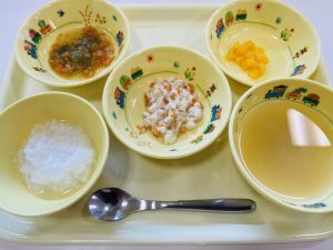 ※おやつのキャロットホットケーキは、生地ににんじんのすりおろしを入れました。にんじんの甘味も出て色鮮やかに仕上がりました。