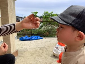 園庭のはっぱ?にミノムシくんがゆらゆらり![]()