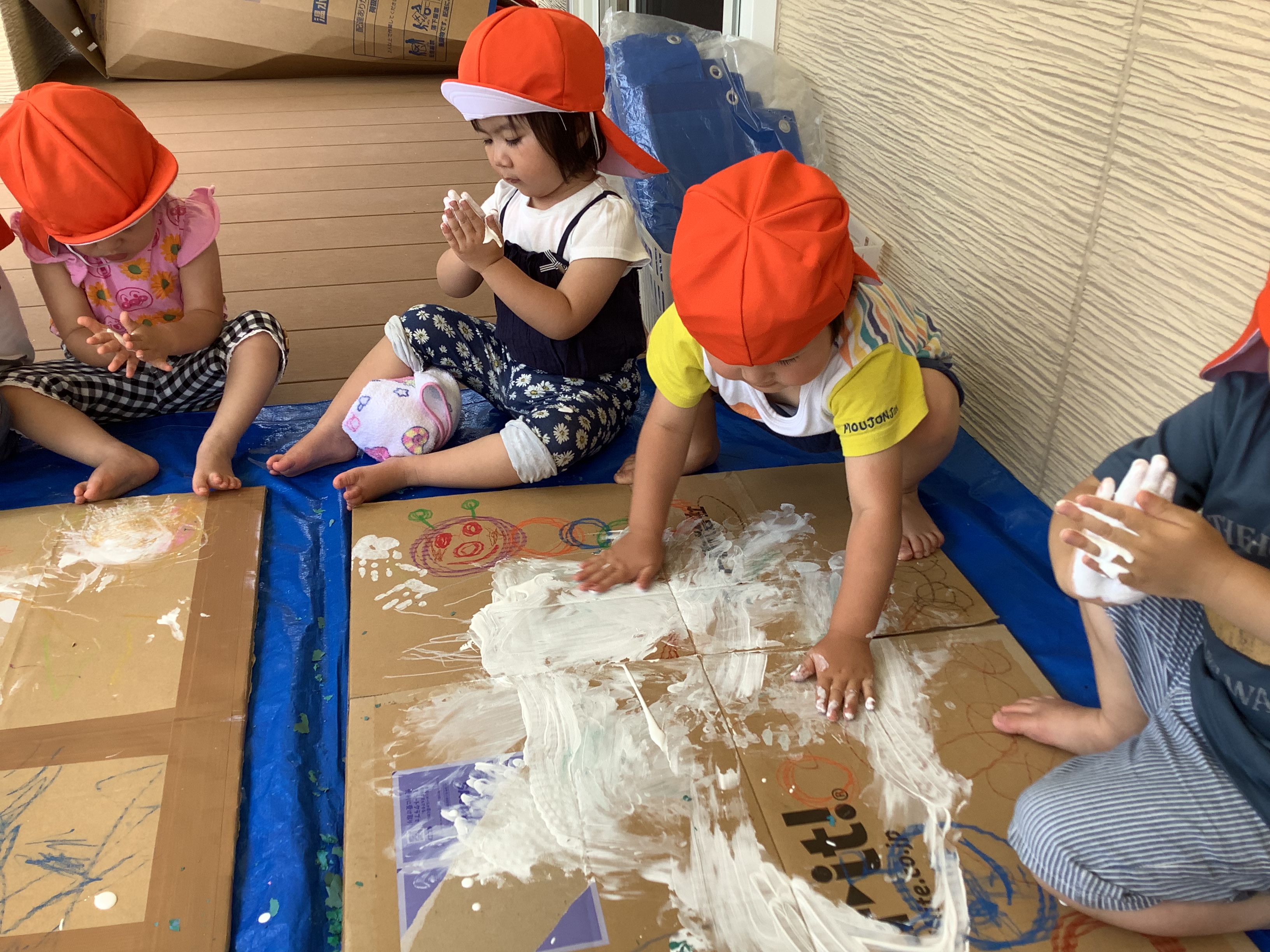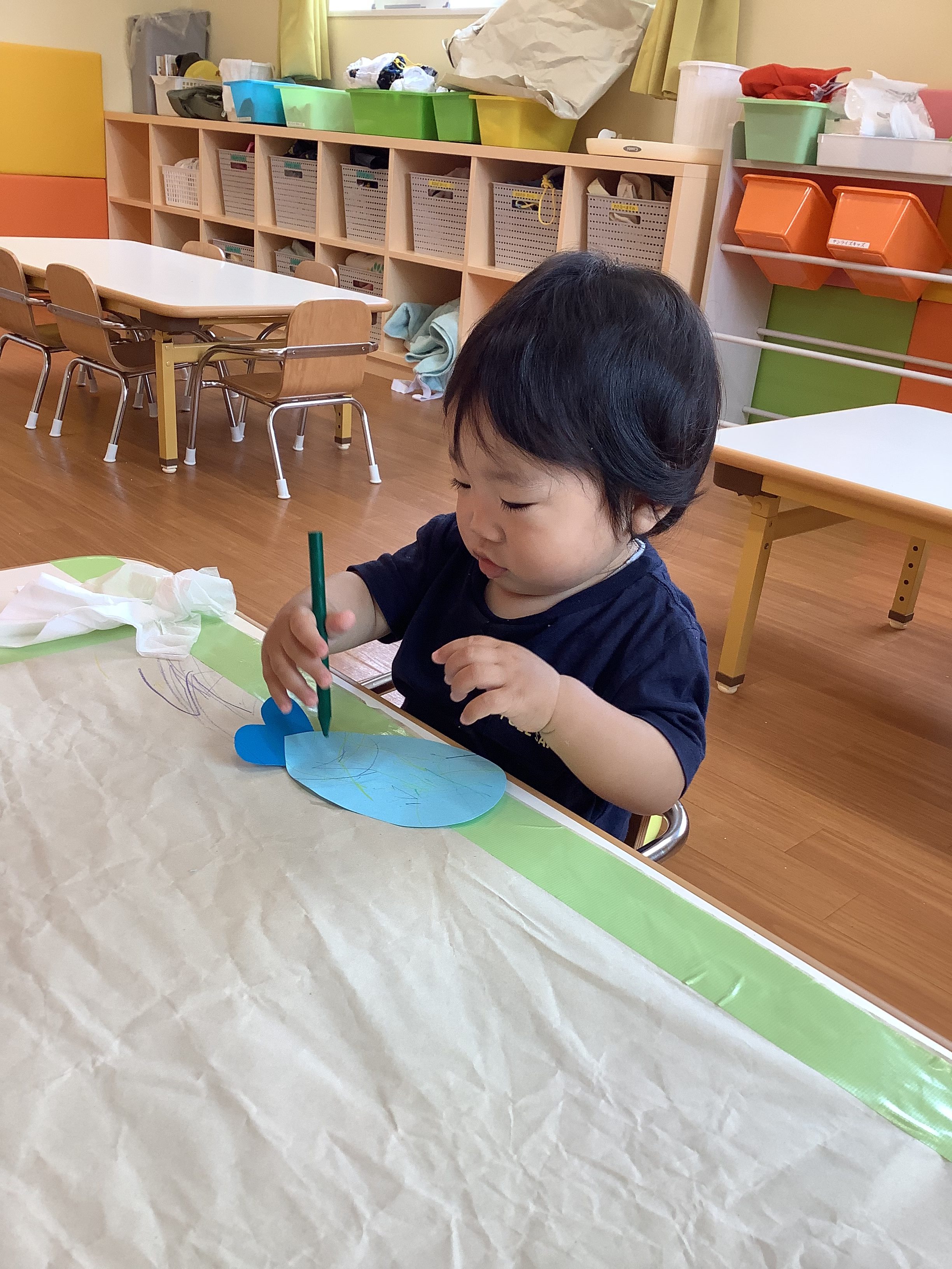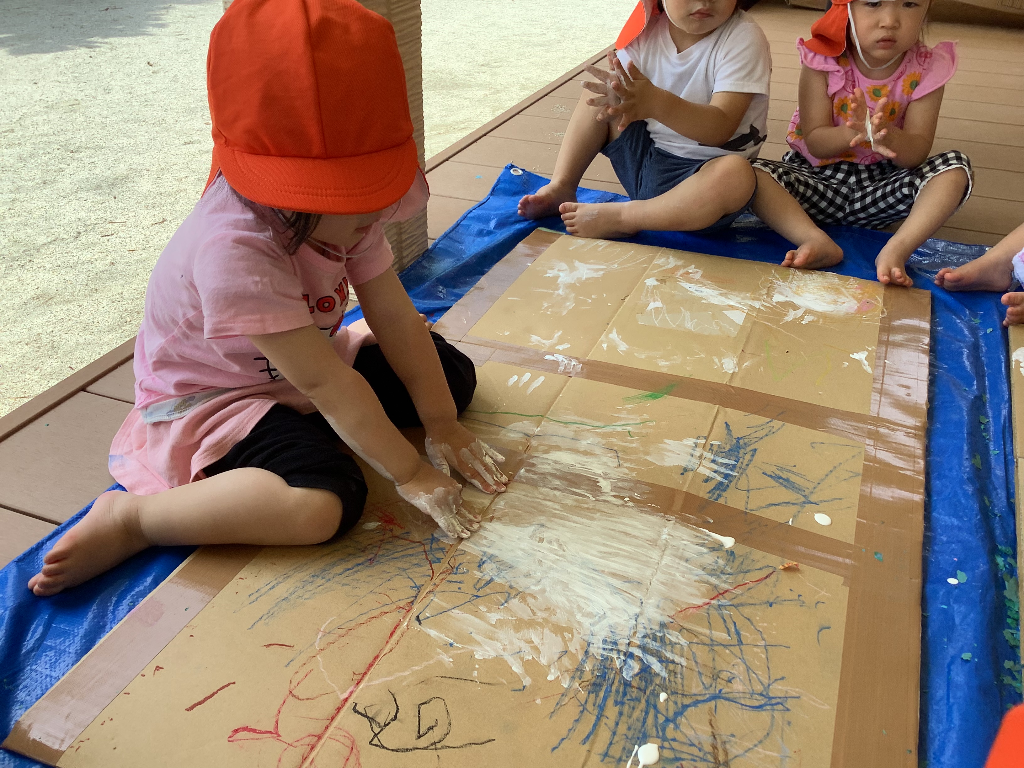自分で好きな色を選んで、絵の具の感触を楽しんでいました♪