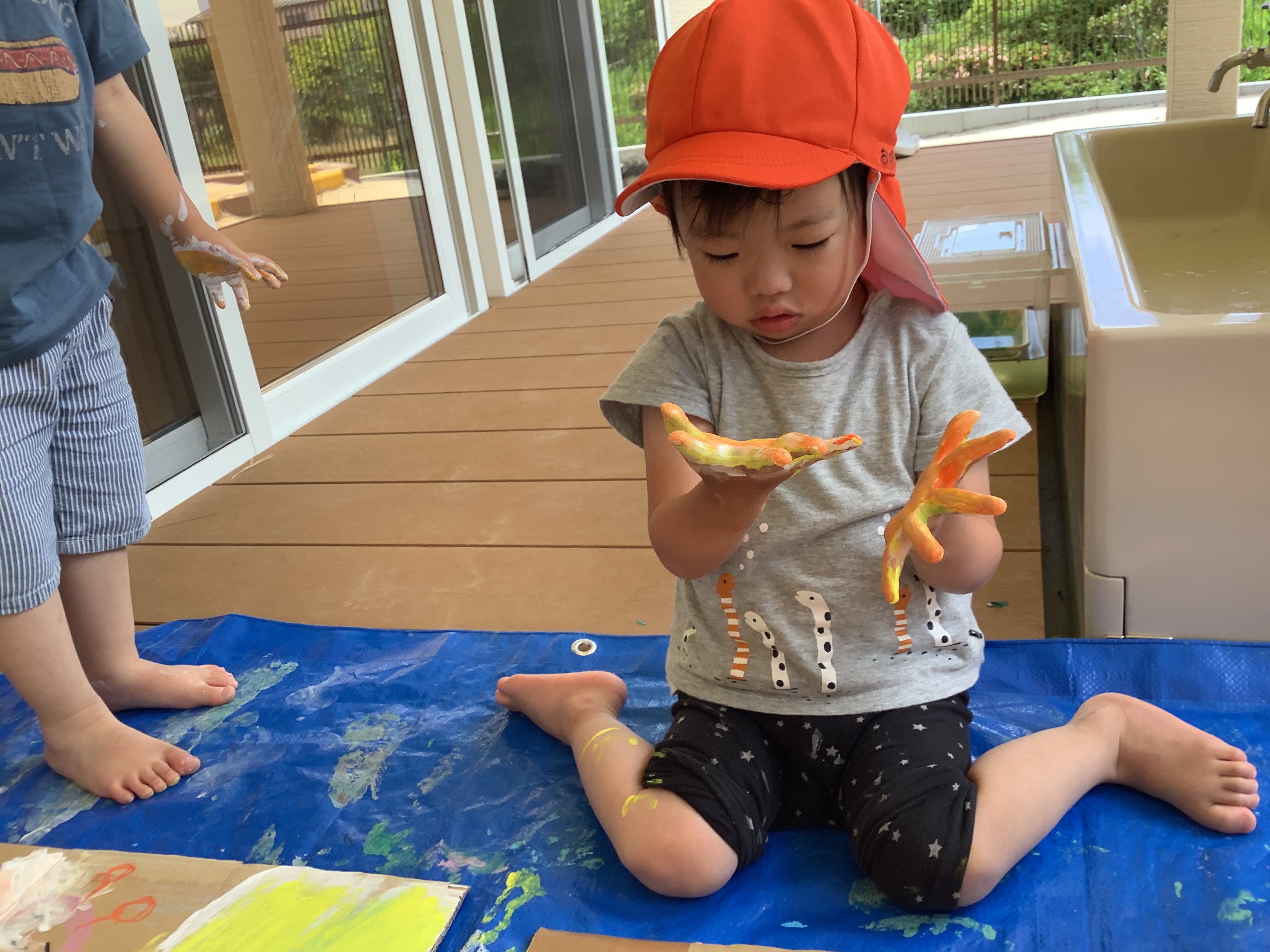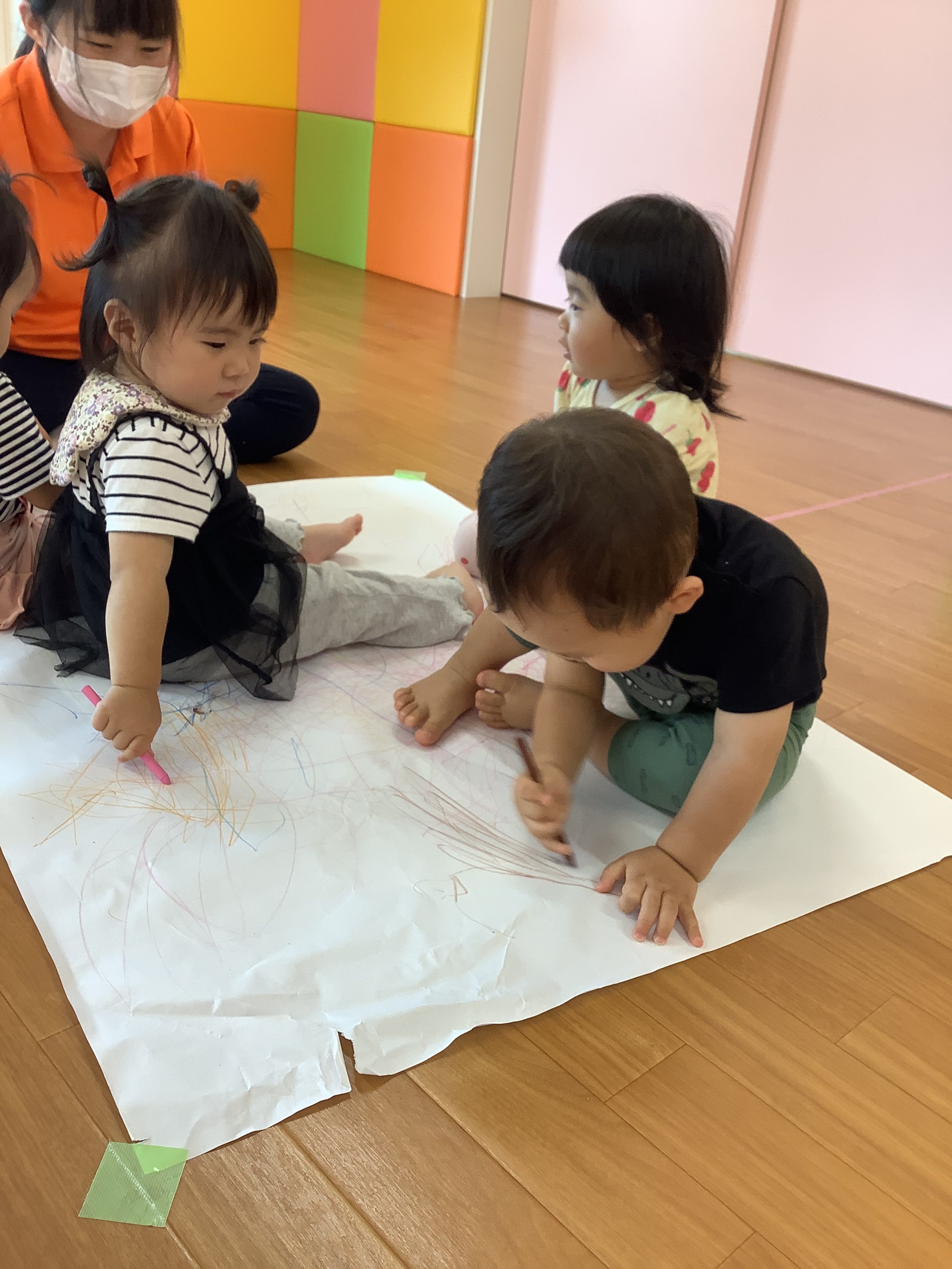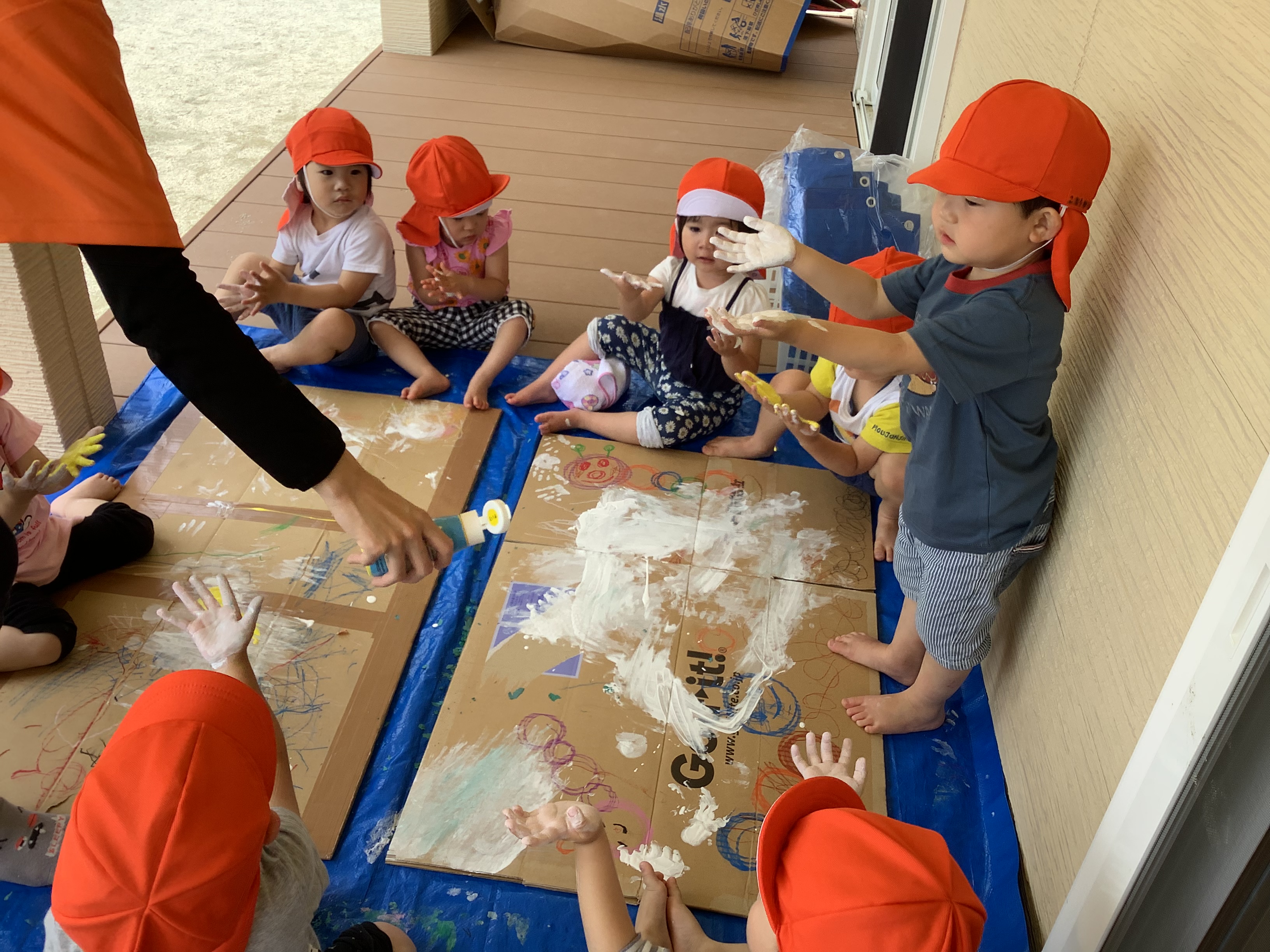 自分で好きな色を選んで、絵の具の感触を楽しんでいました♪