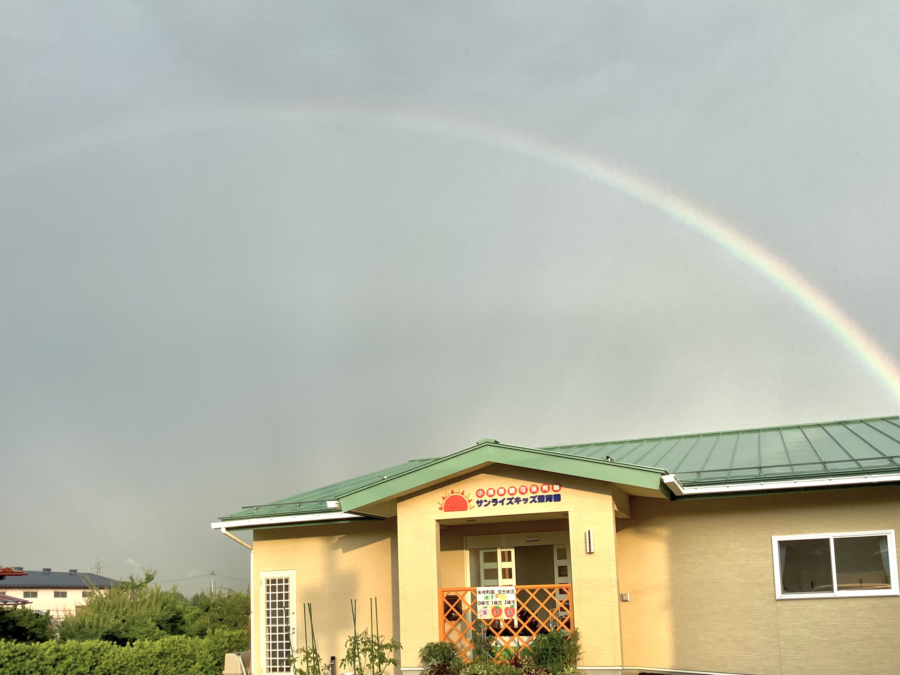 お迎えにいらした保護者さんが、「せんせい‼️虹出てますよ‼️早く早く‼️」