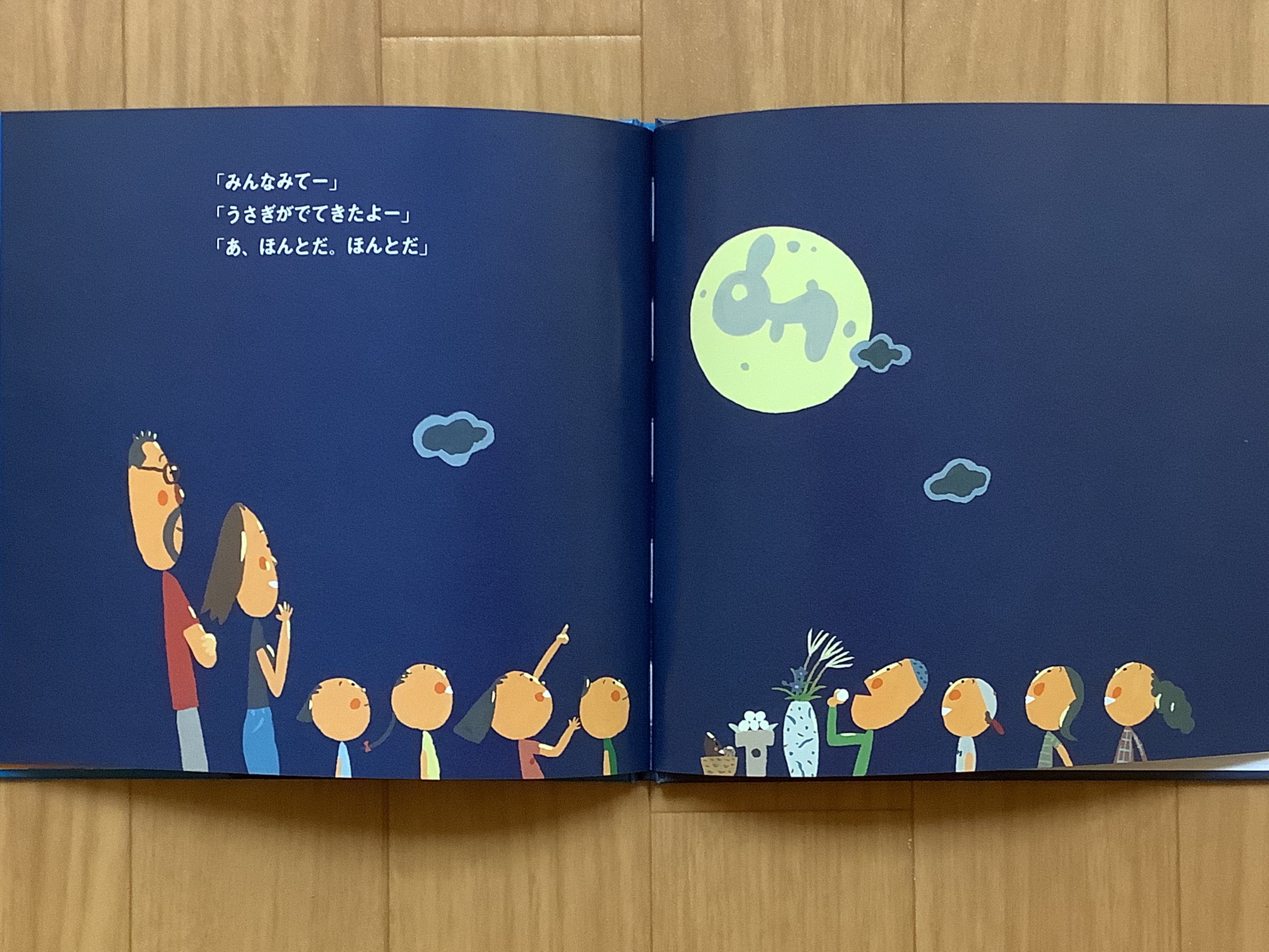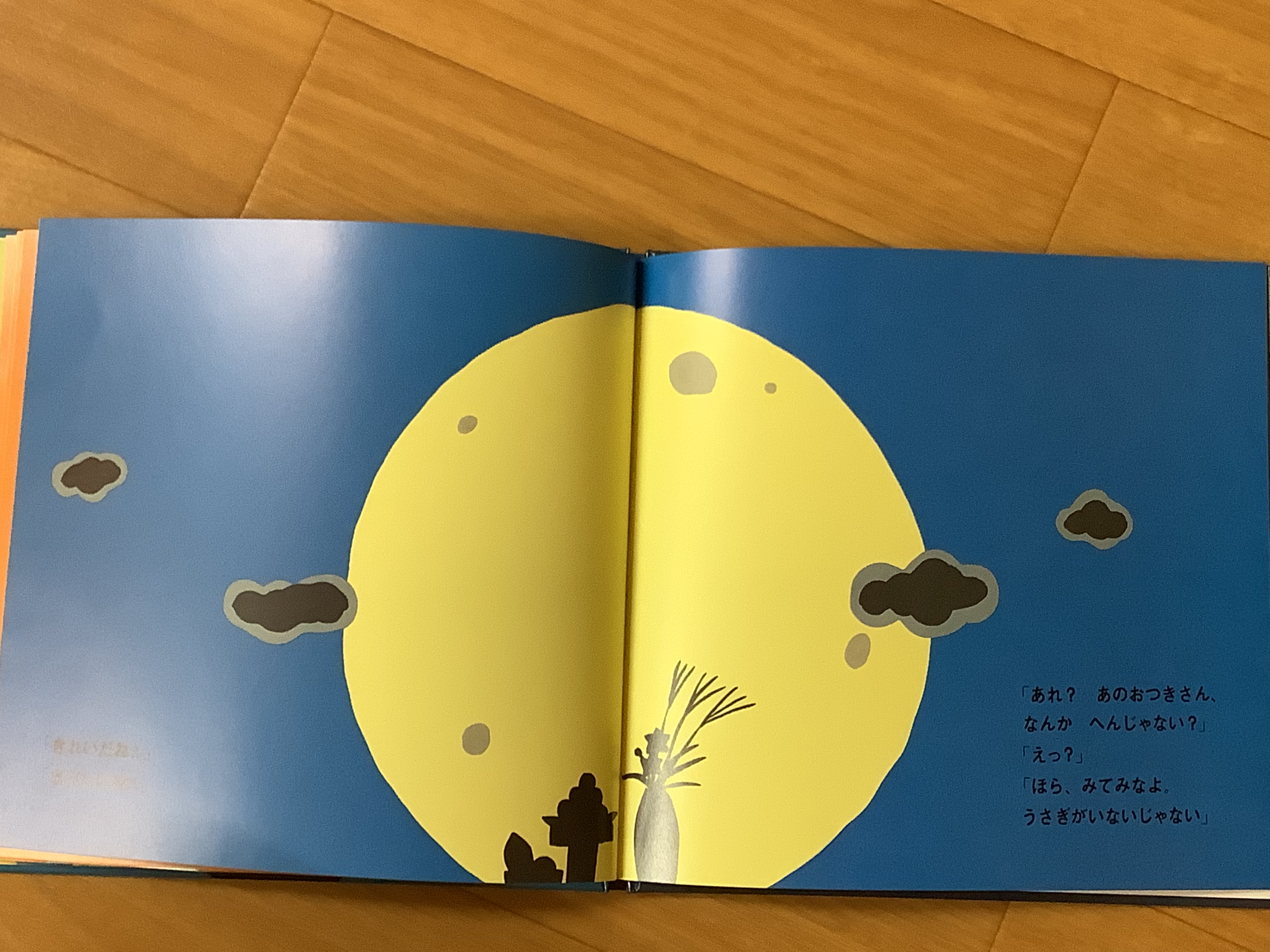 あれっ・・・・みんなで見上げたお月さまにはいつもと違ってうさぎさんがいません。