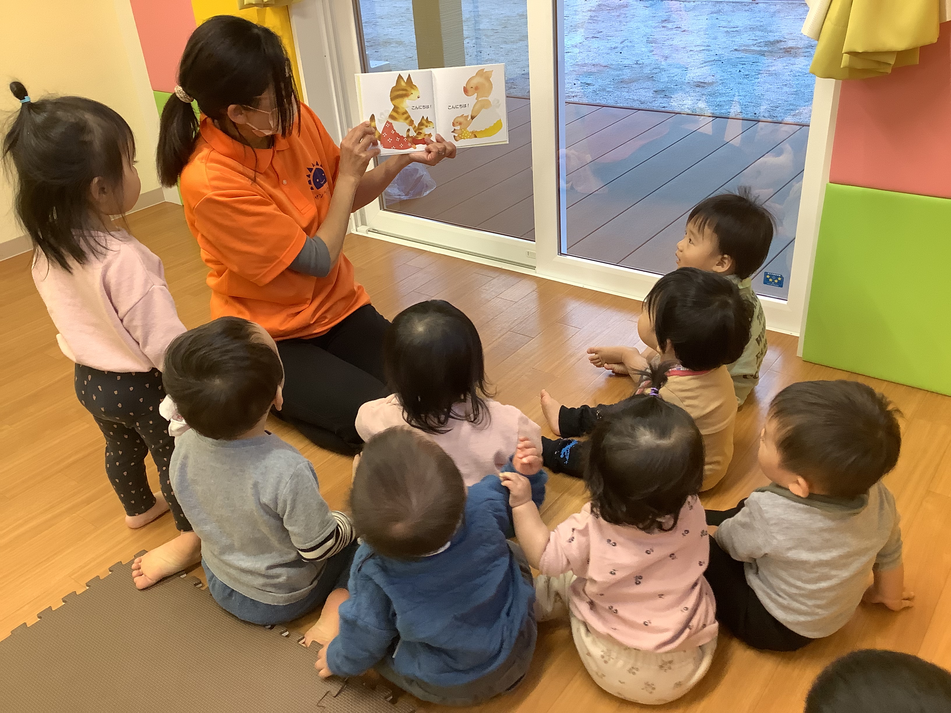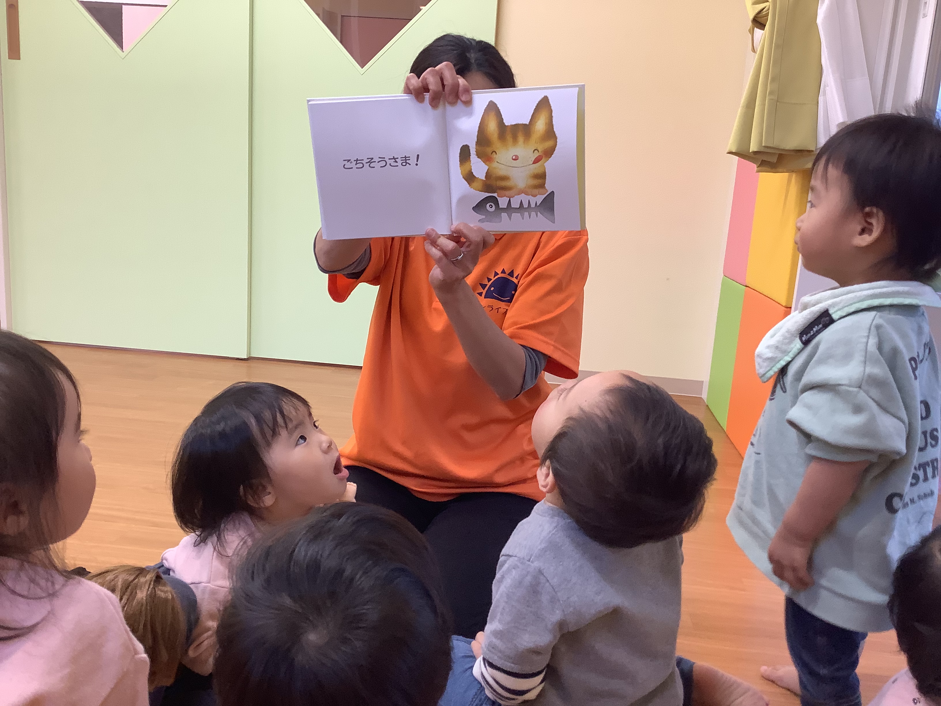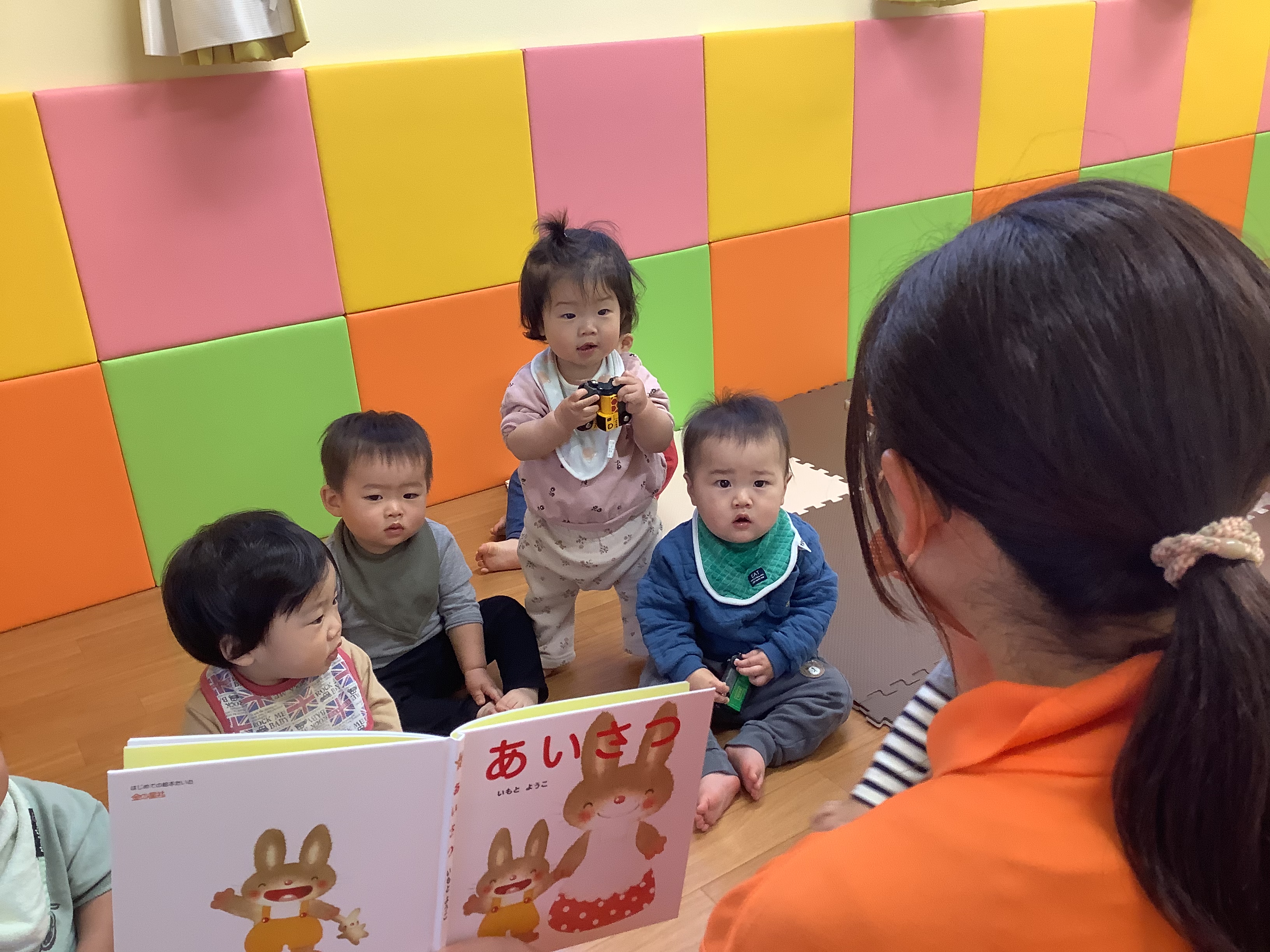 今回の読み聞かせ絵本は「あいさつ」です。