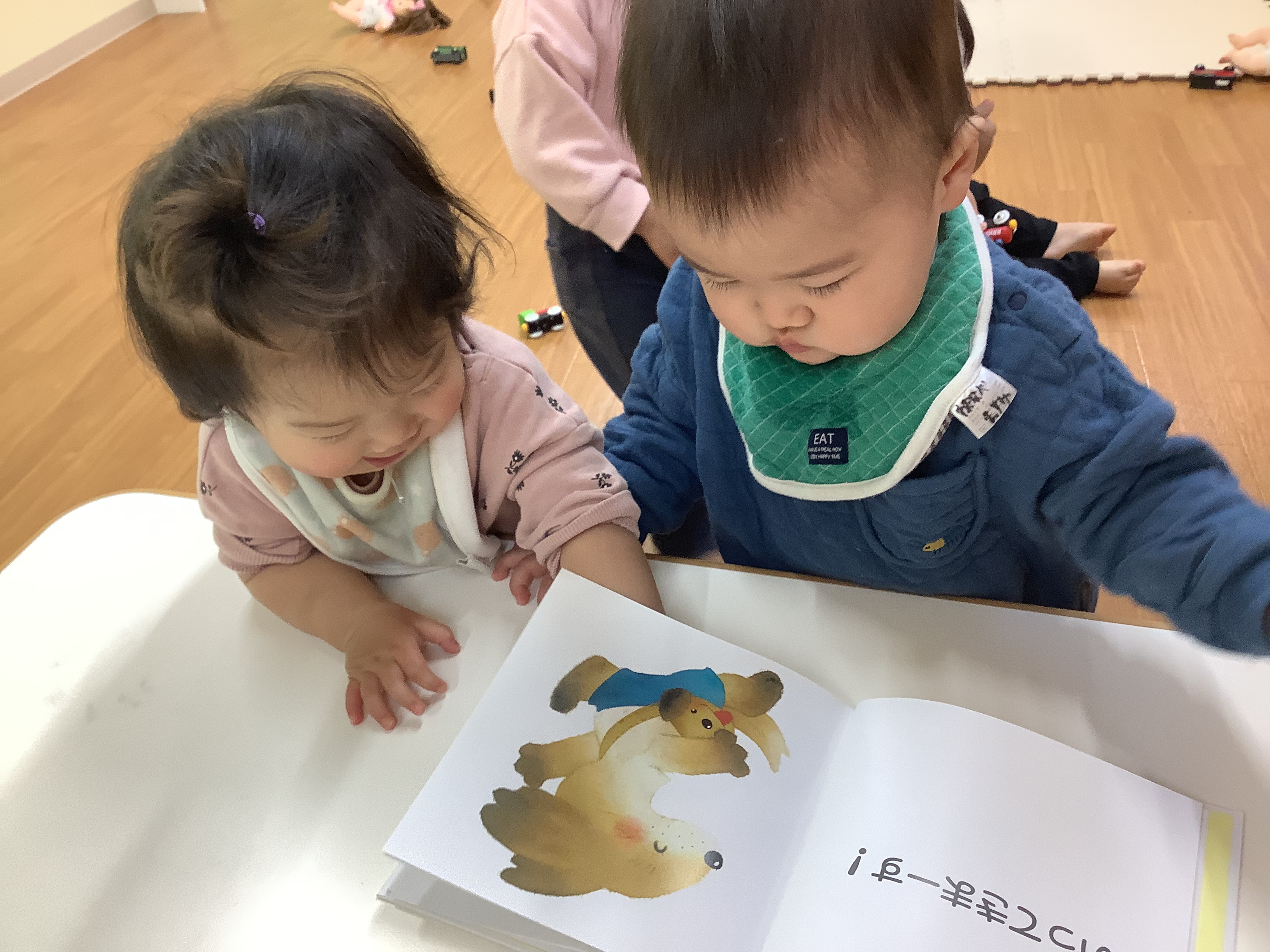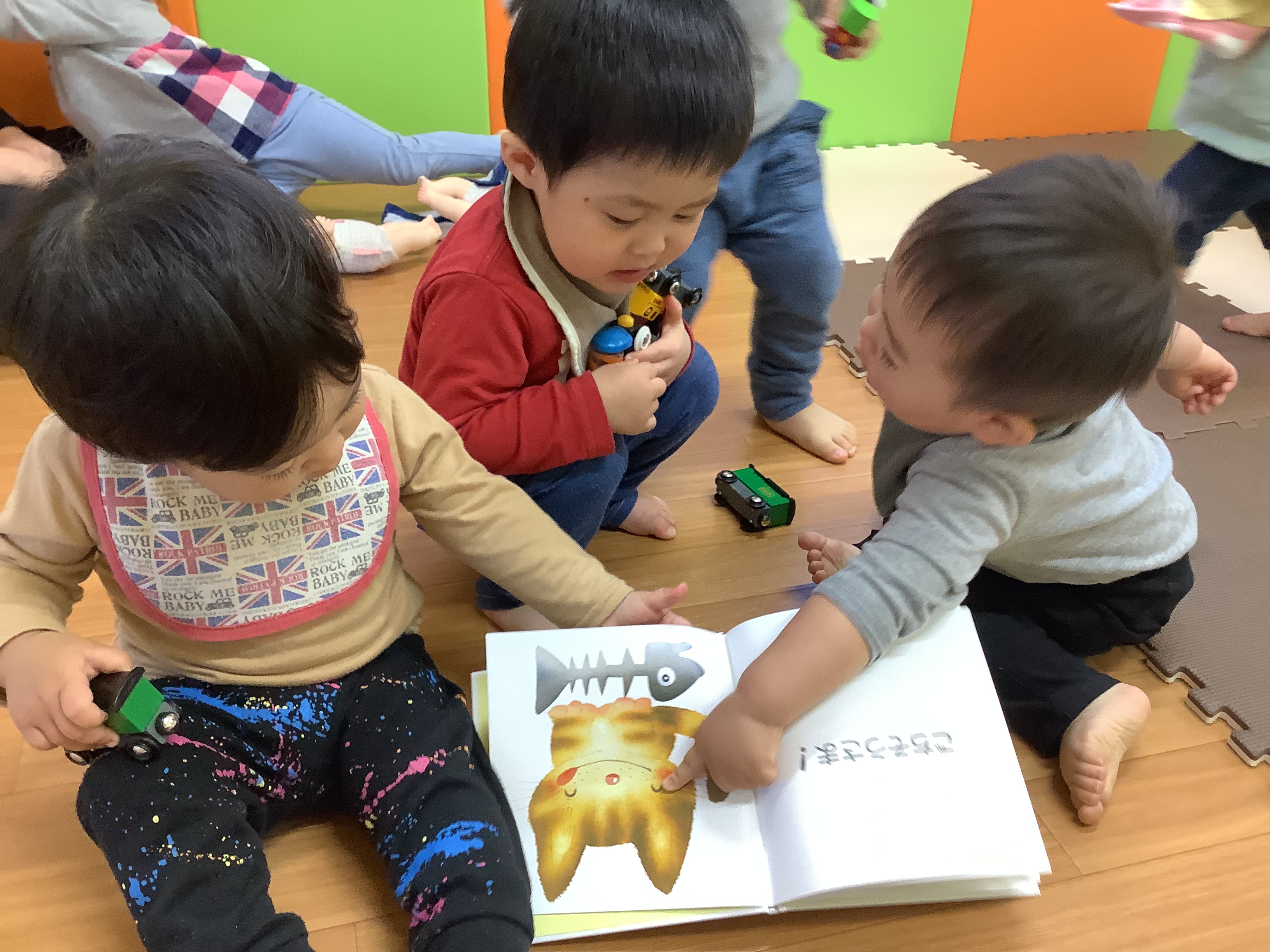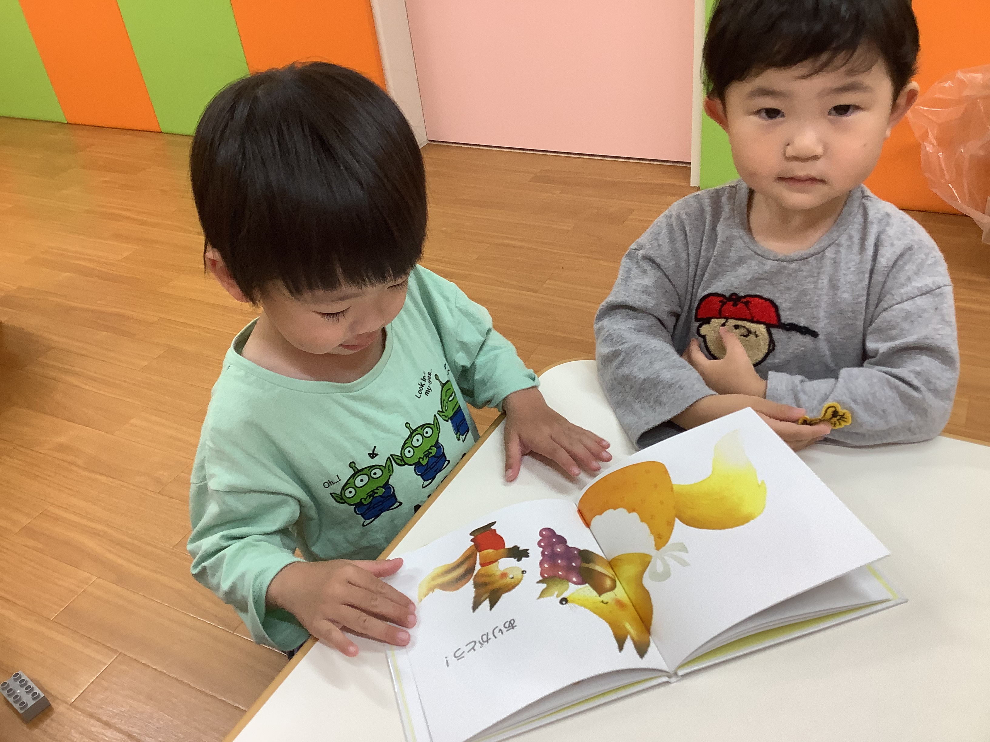 今回の読み聞かせ絵本は「あいさつ」です。