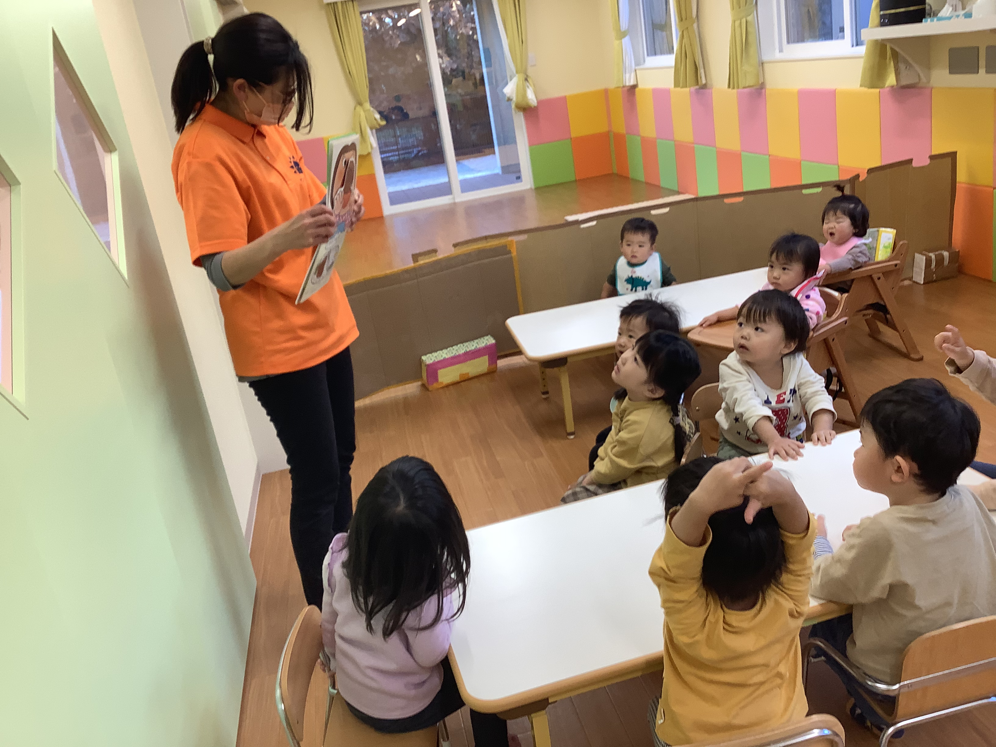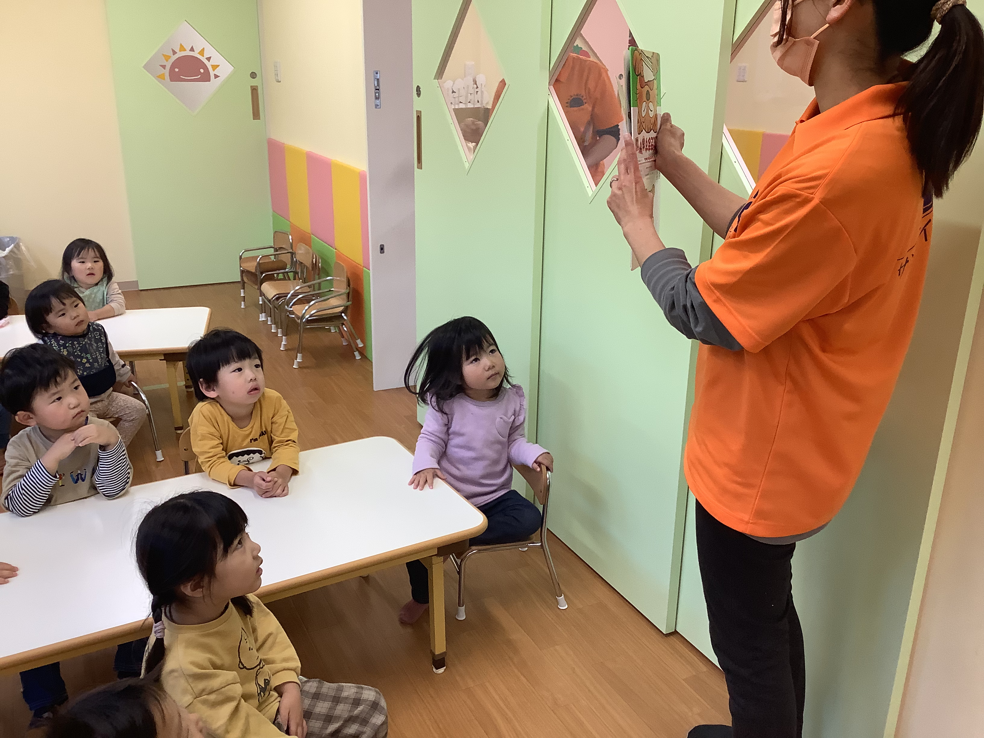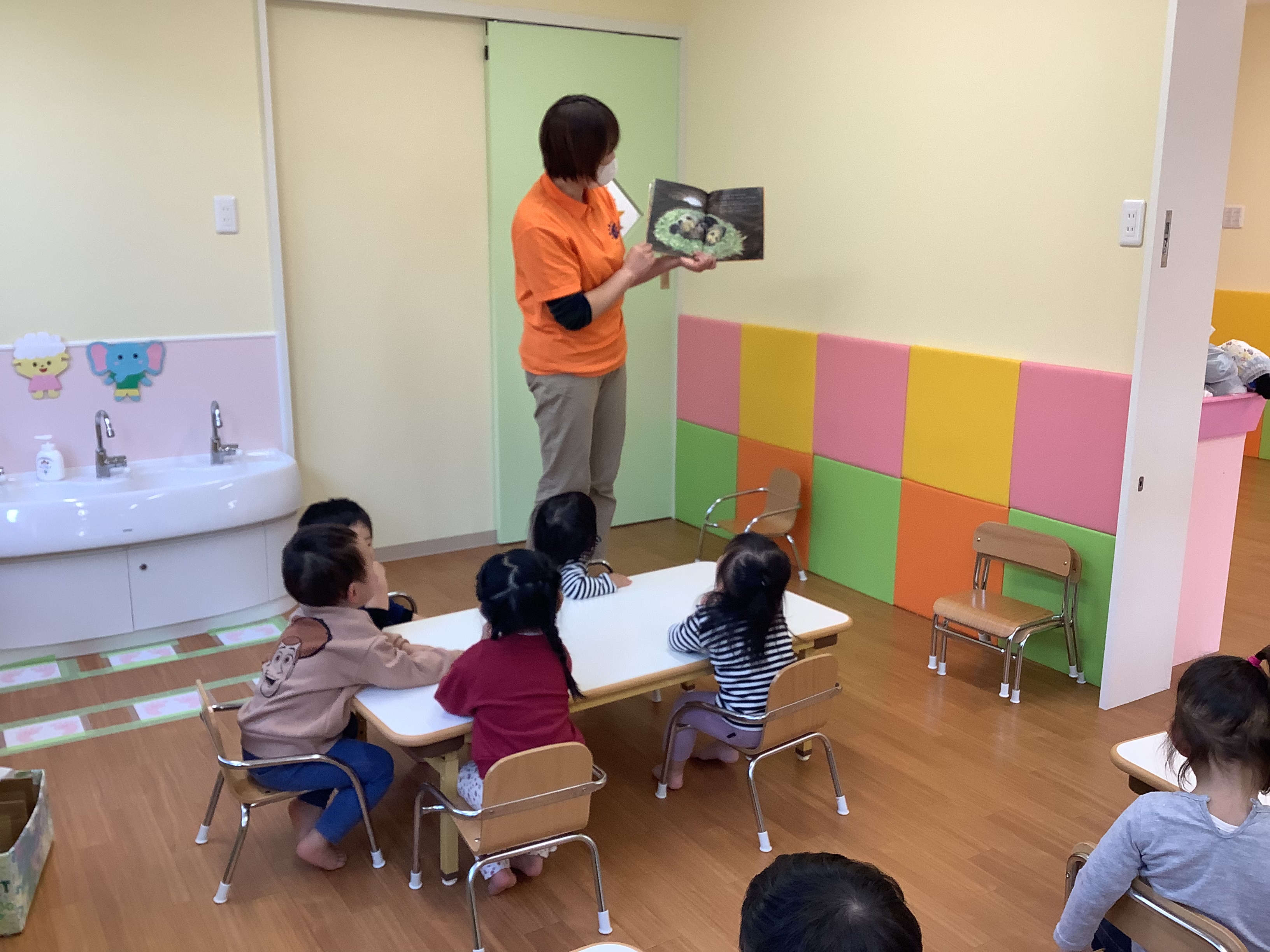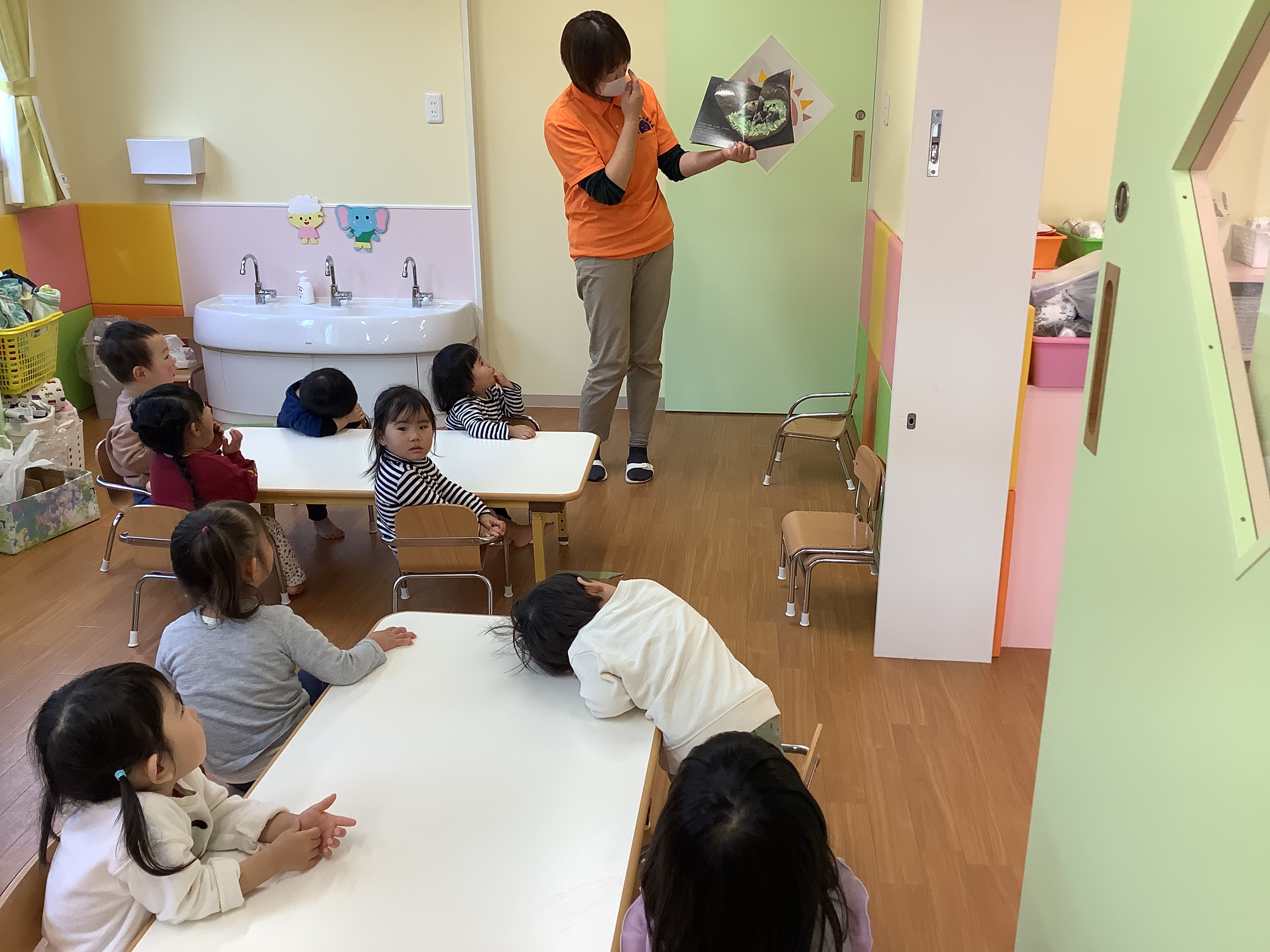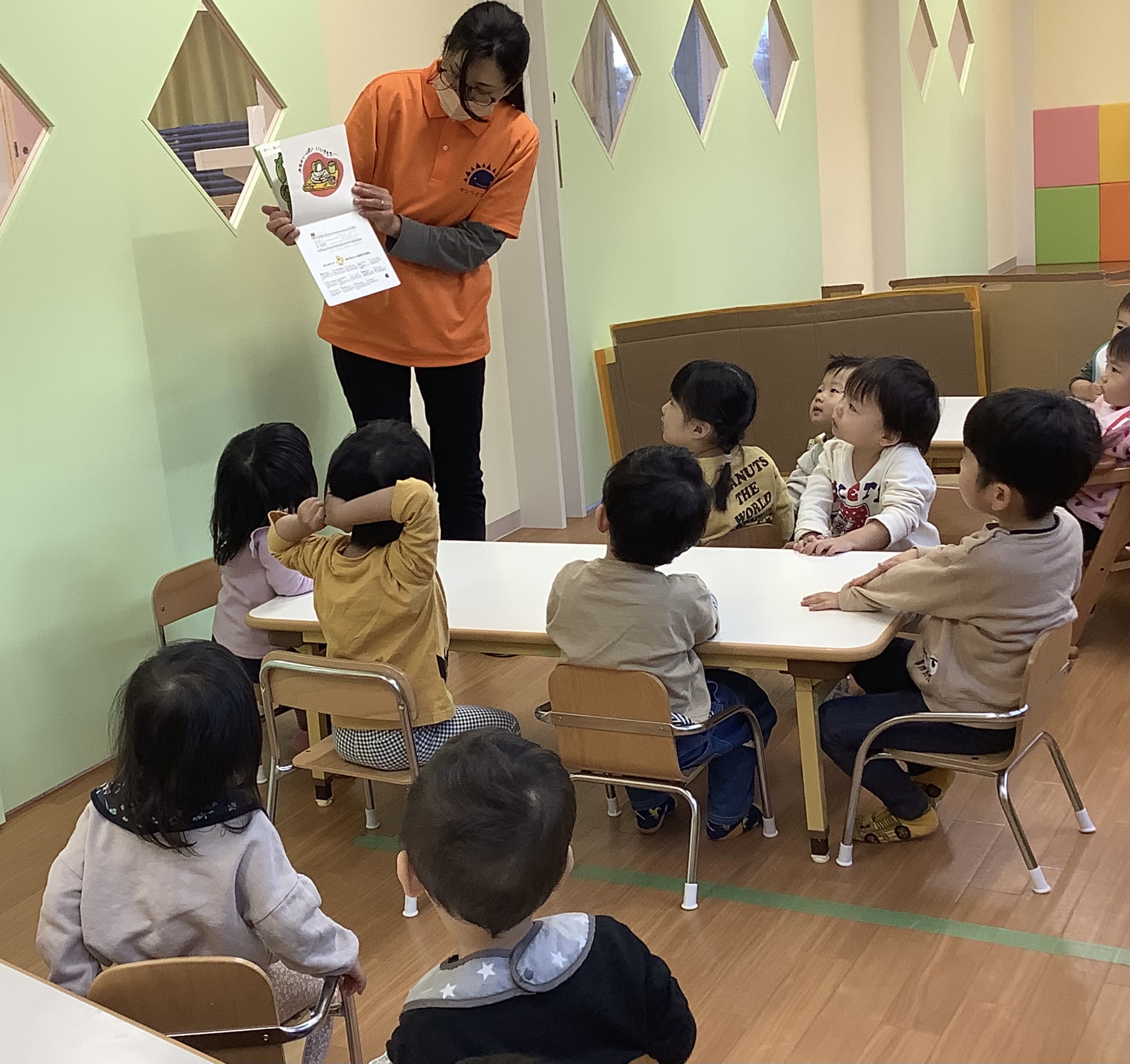 こちらはりんご組さんの月刊絵本を読んでいる様子です(o^^o)
