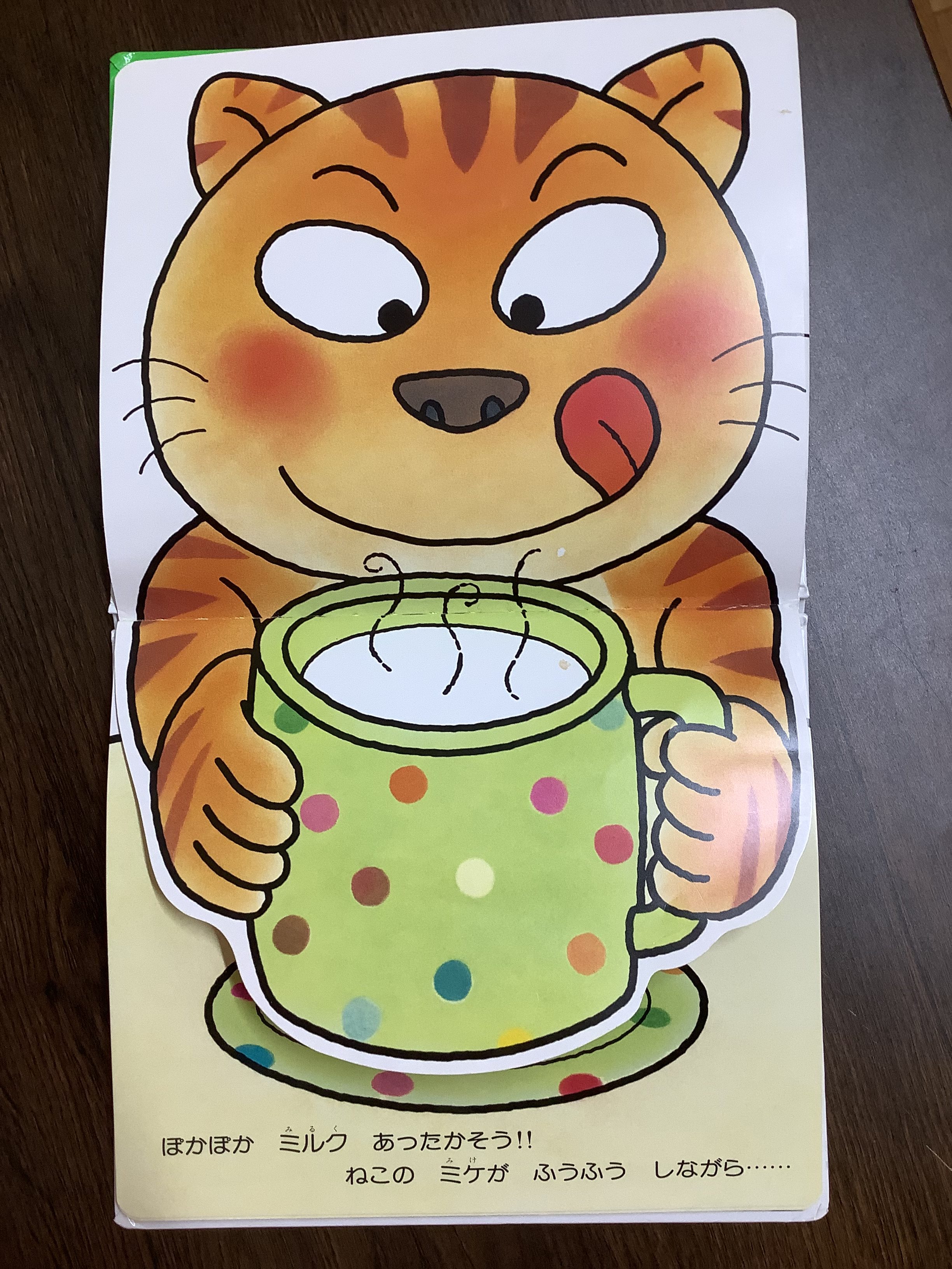 どうぶつたちが「いただきます」と言って食べるしかけ絵本です。