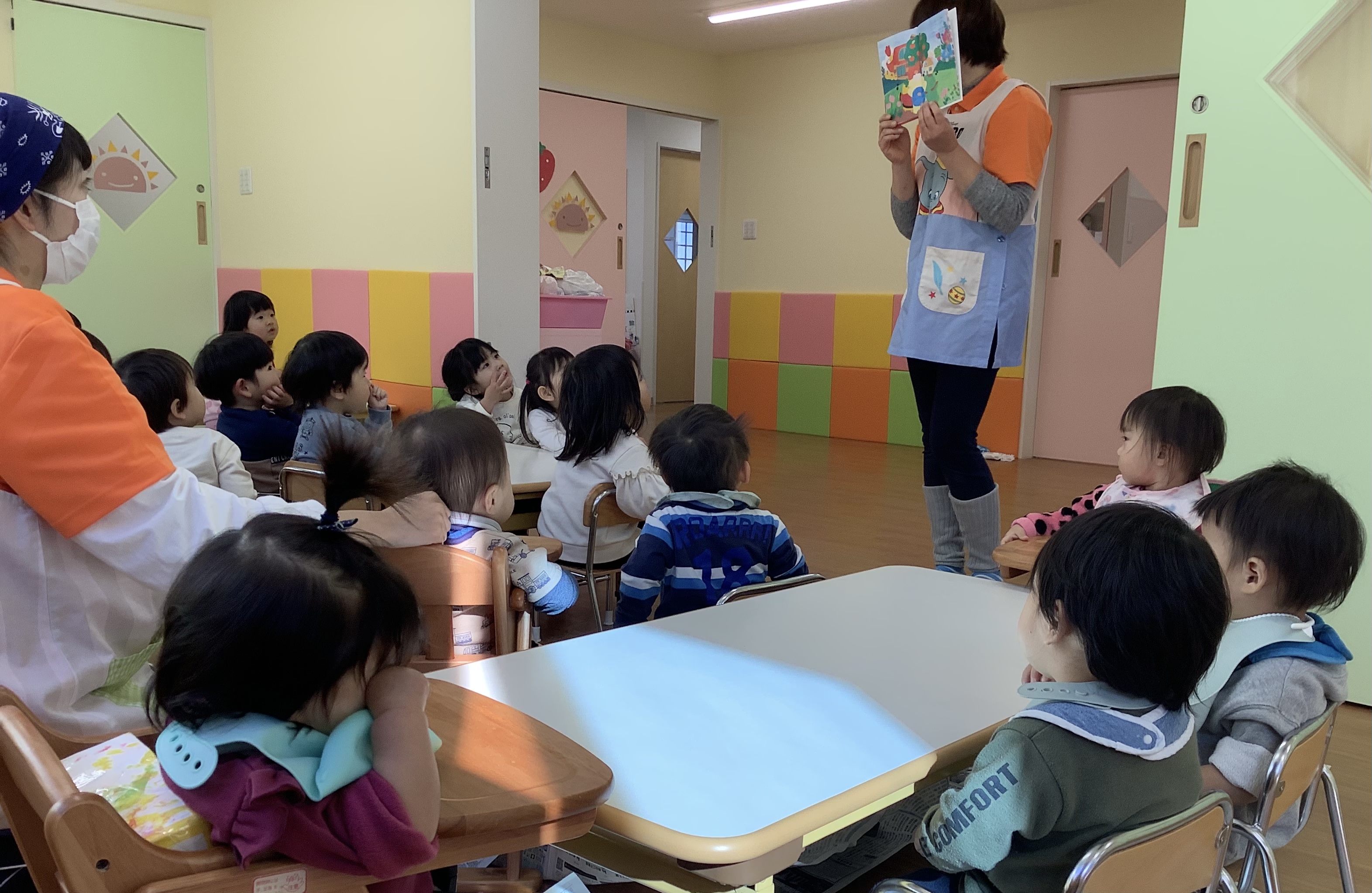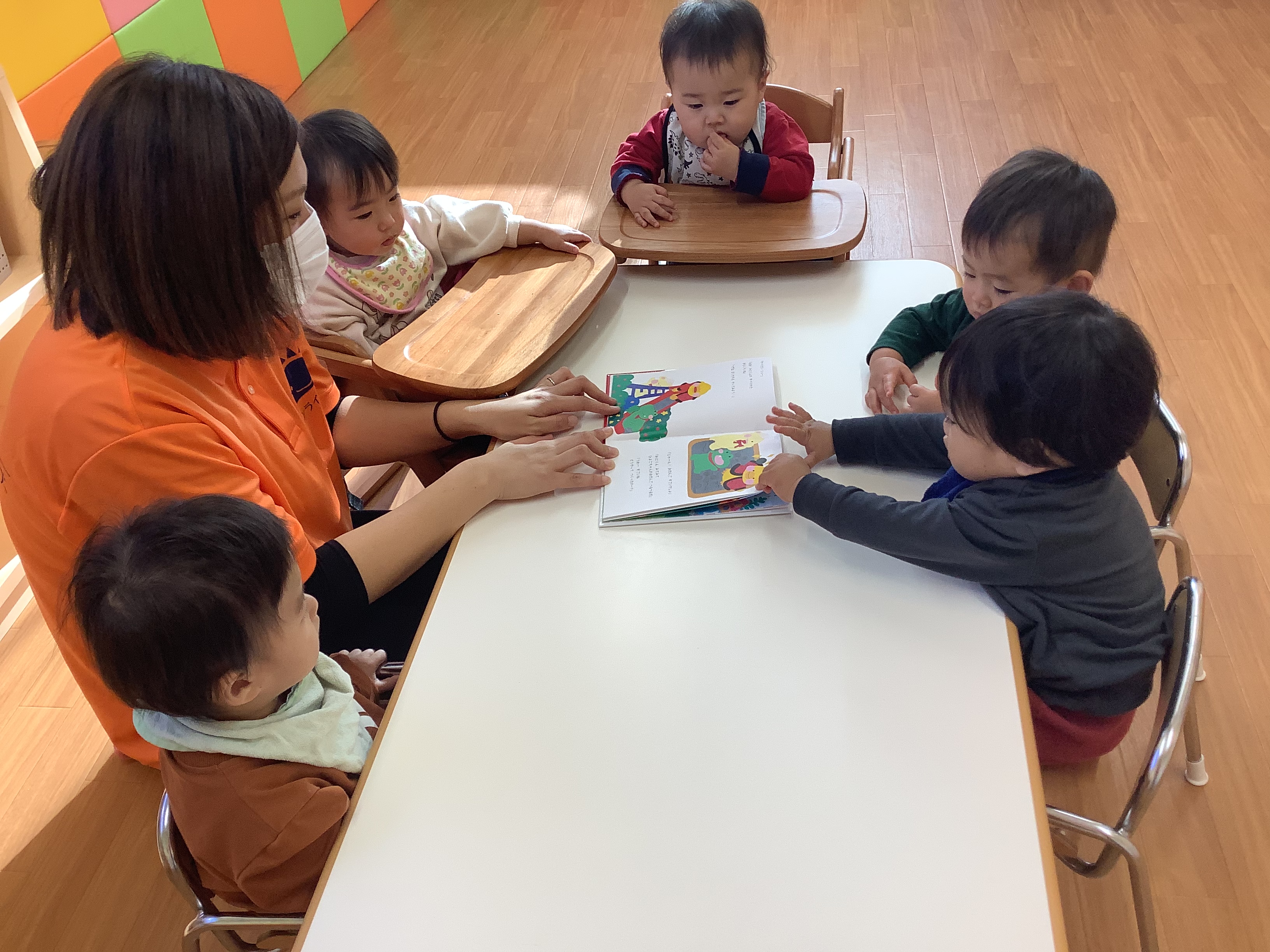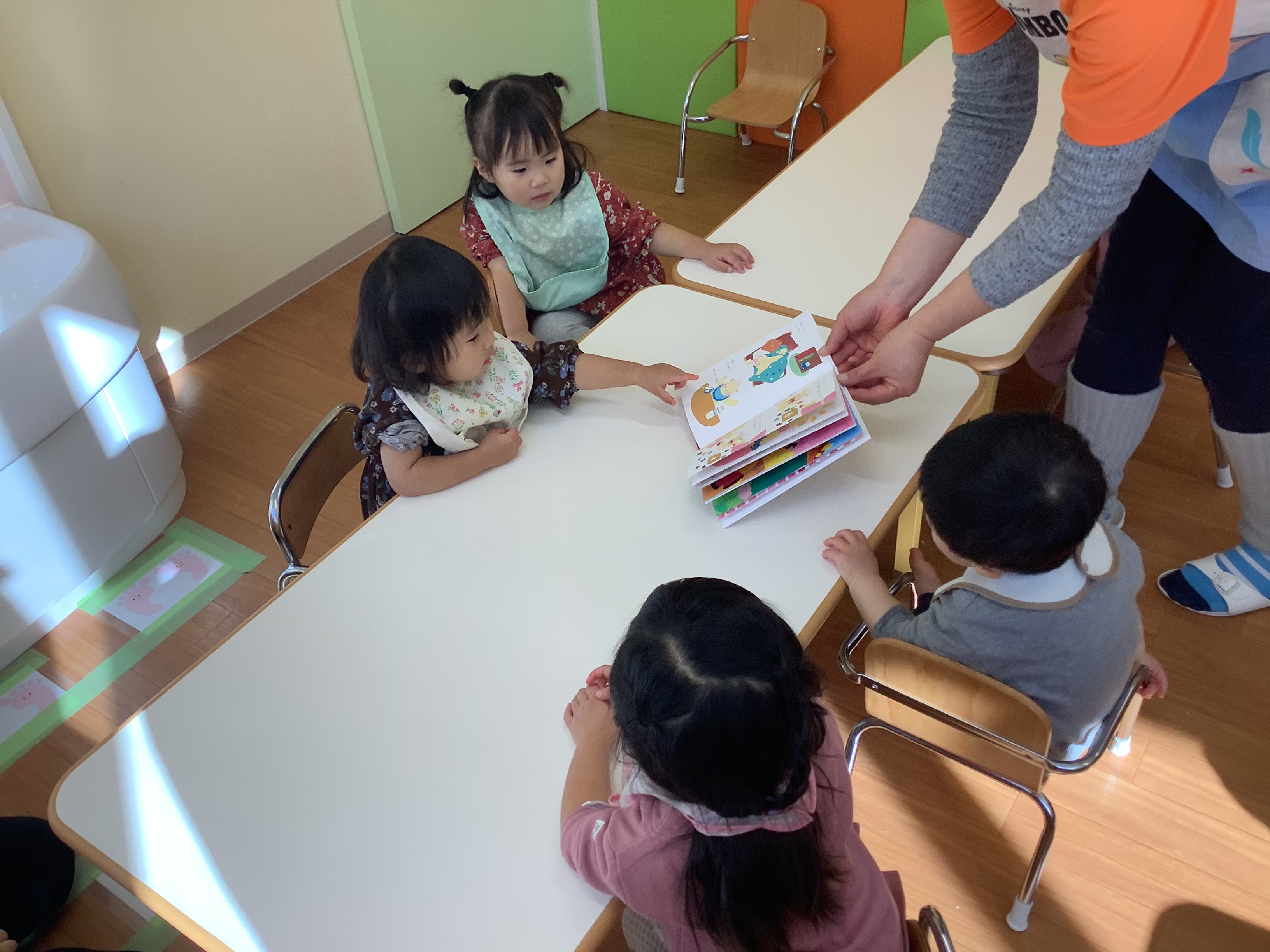 小さいクラスでも、ムムくんやひよこちゃん、ワニさんなどを指差して楽しんでいました