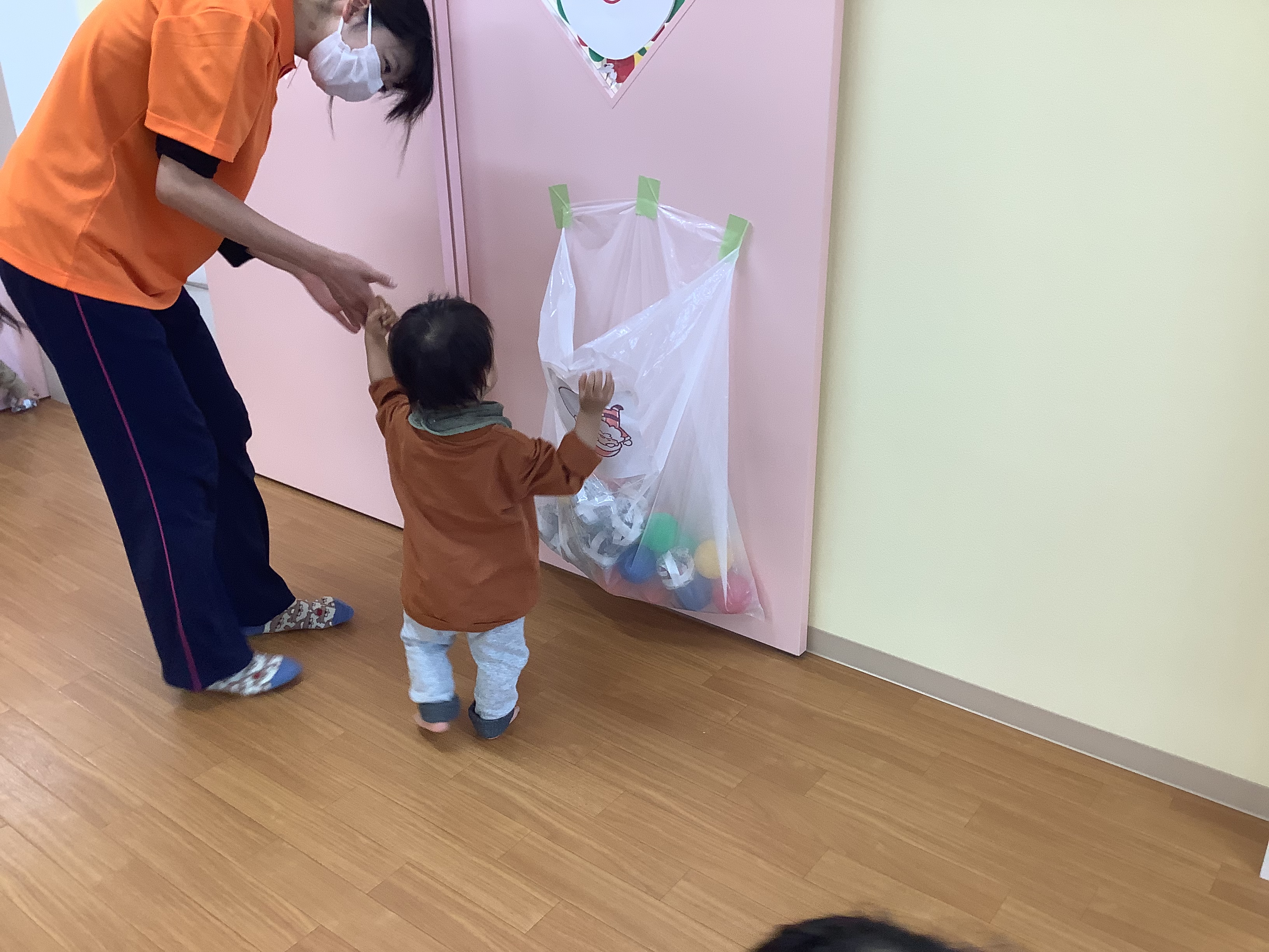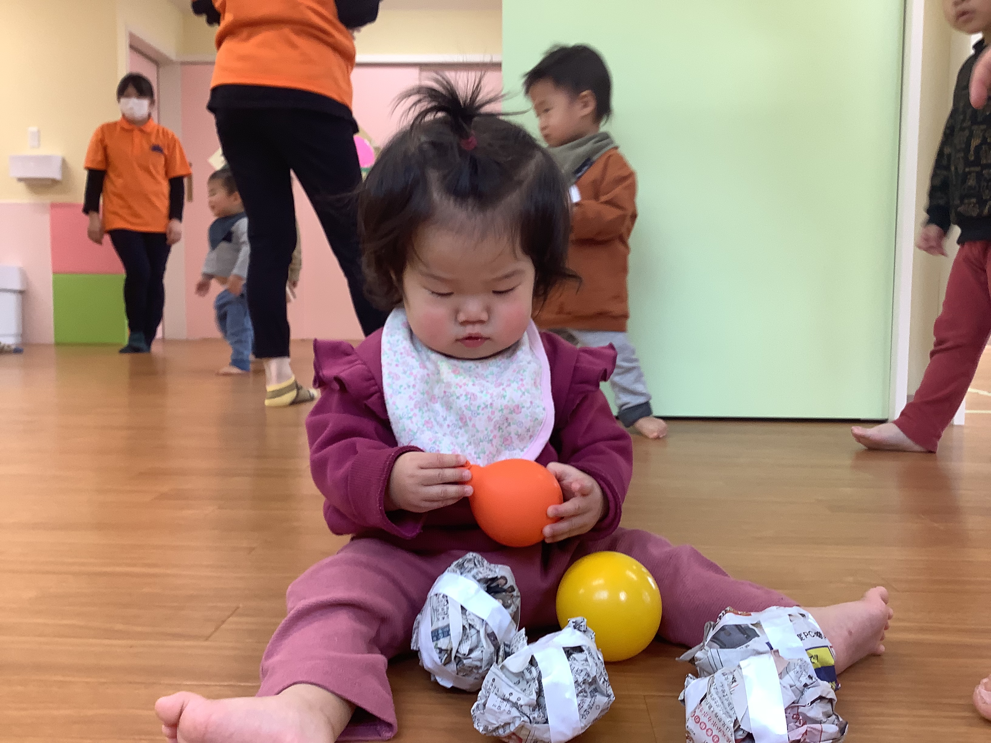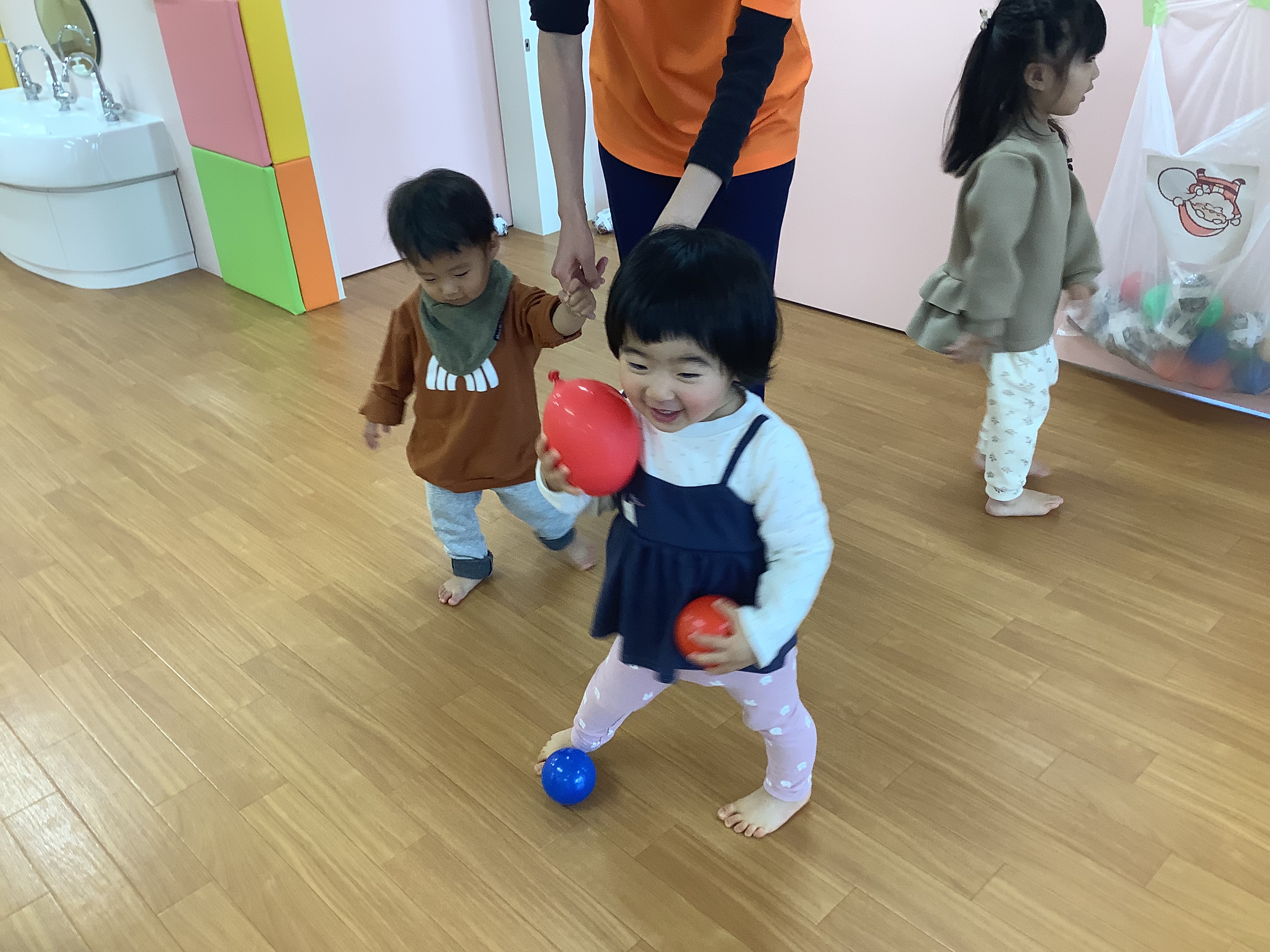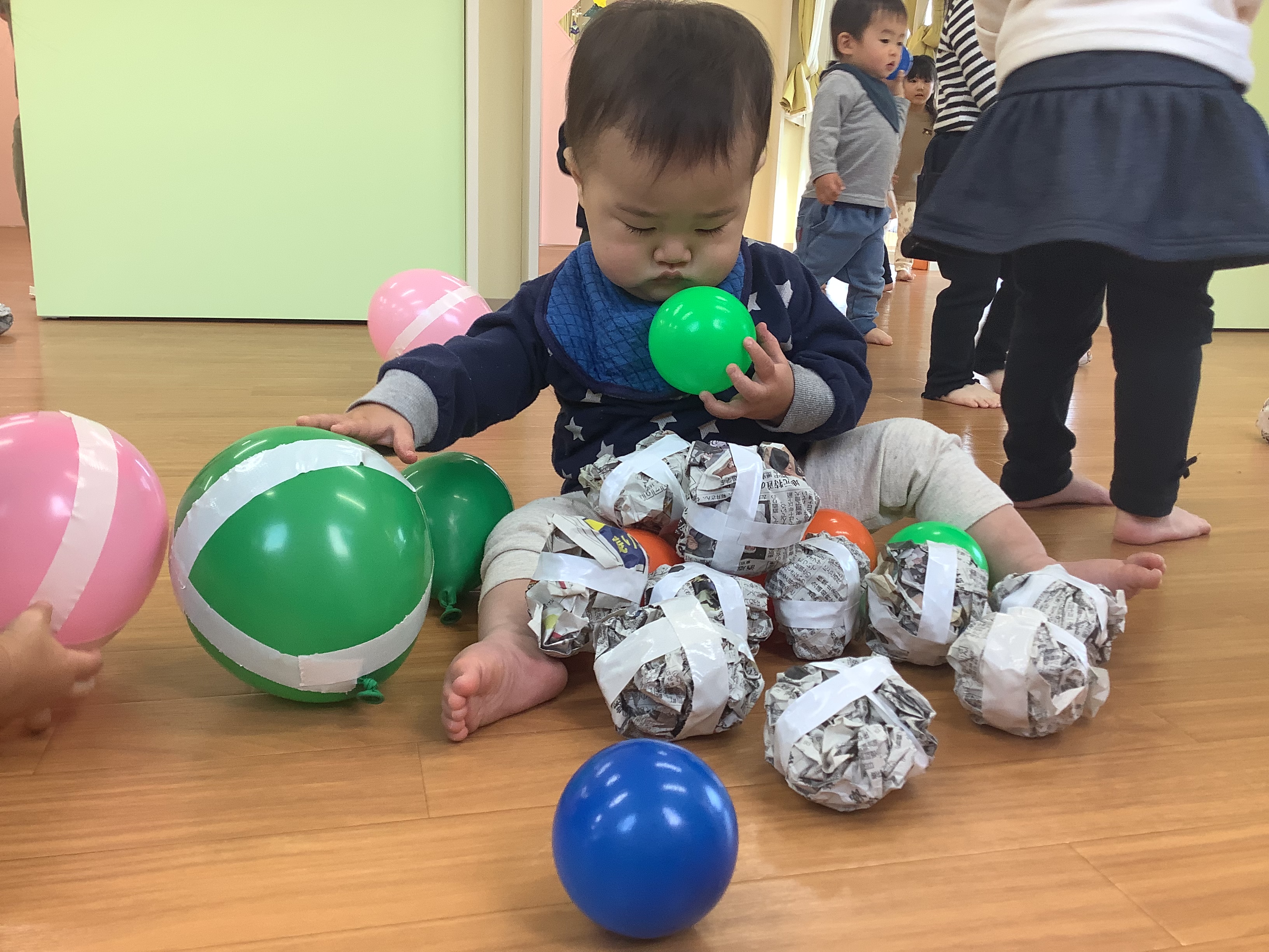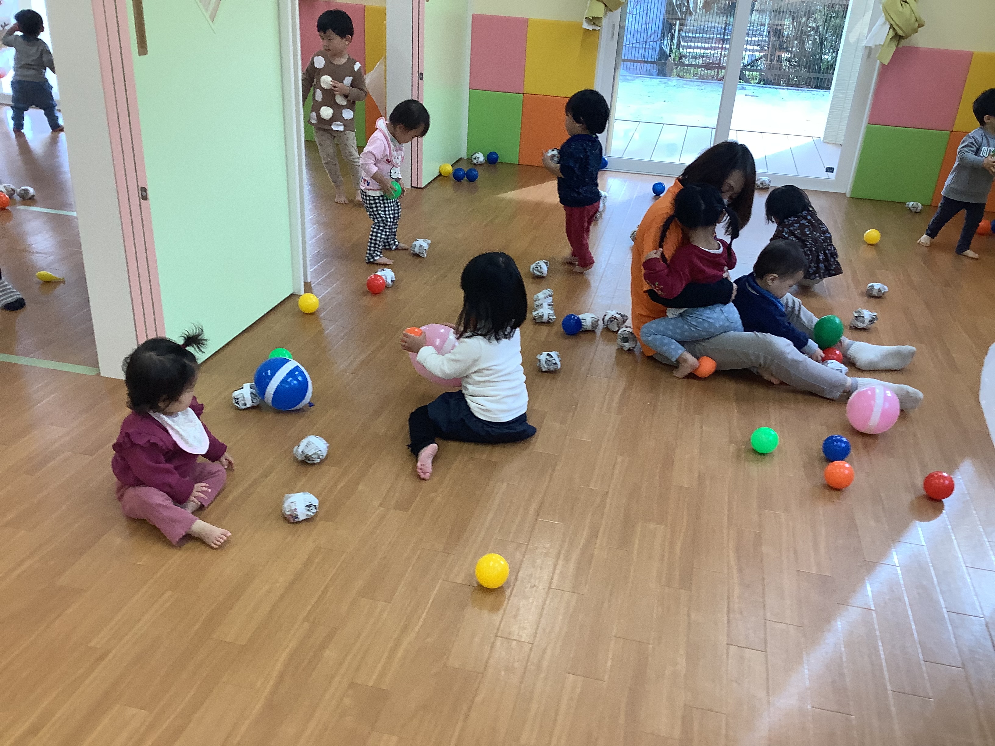 お座りしていた子には、お友達がたくさんのボールを運んできてくれました![]()