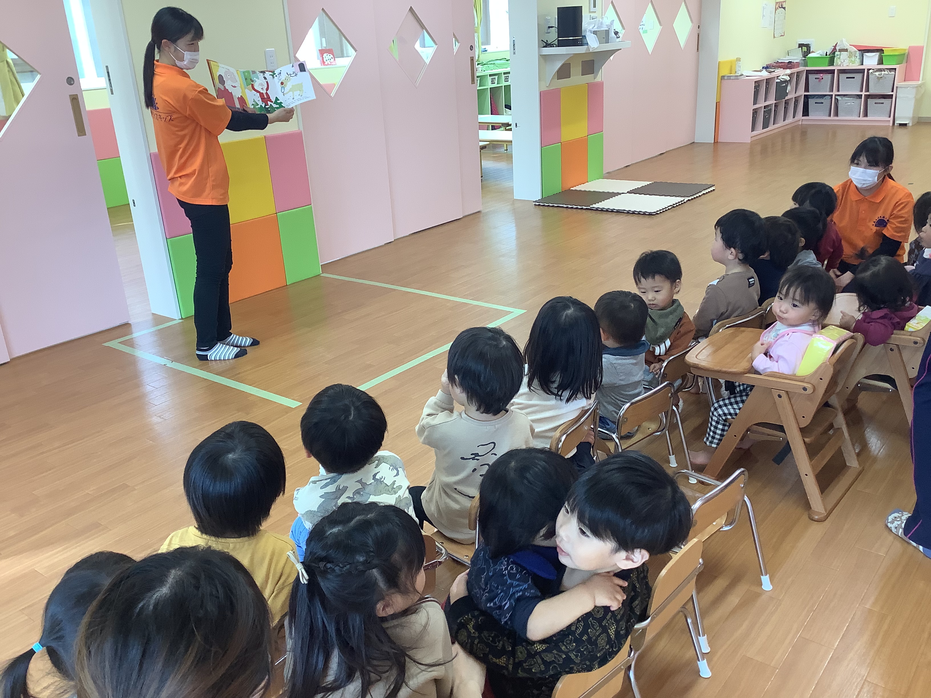 お楽しみは、クリスマスバージョンの手遊びと、サンタさん?が出てくる絵本でした。