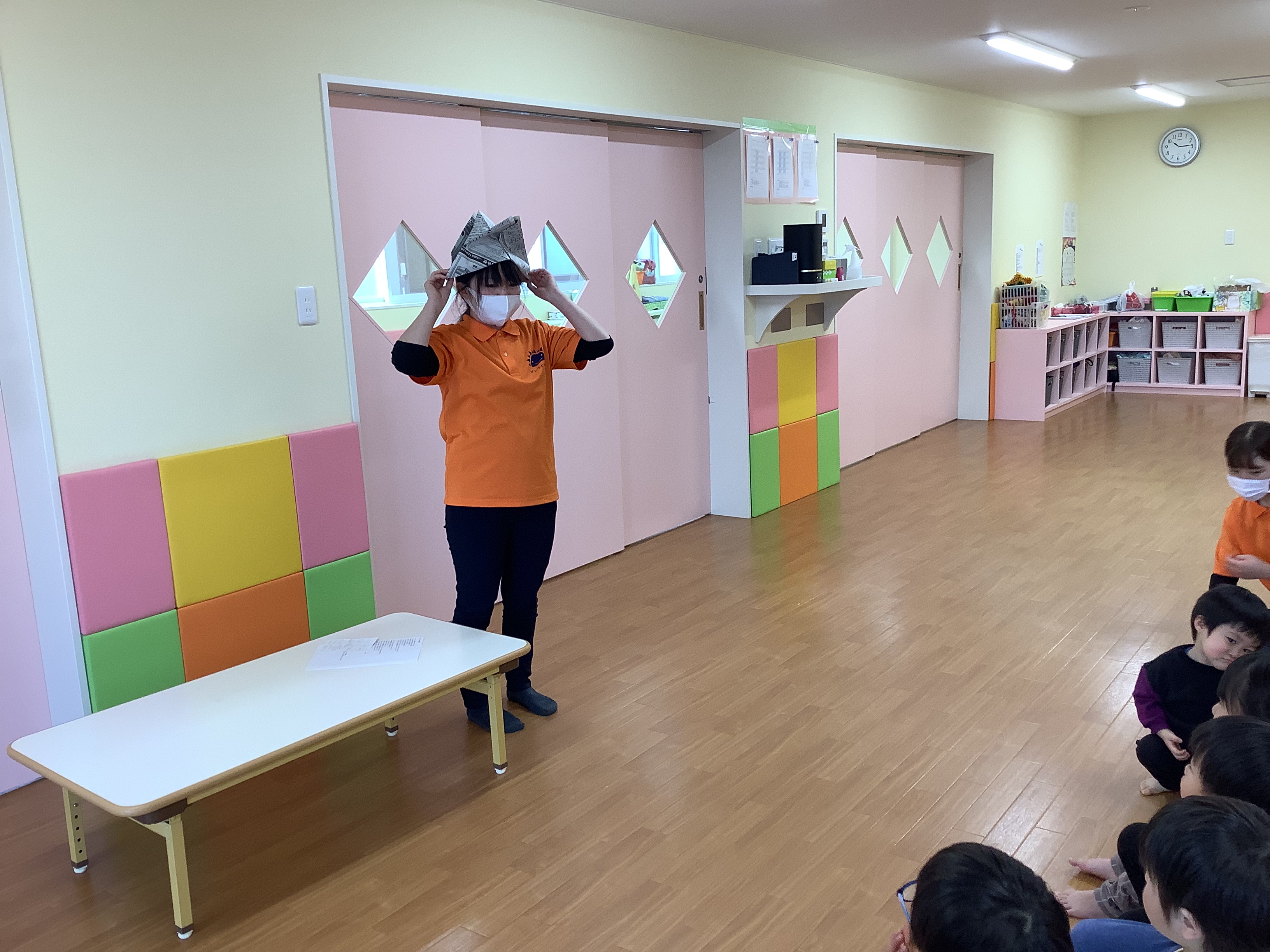 「ネズミくんの冒険」というお話がマジックになっていて、破った新聞紙の中からケーキが出てきたのでみんなビックリ‼️うれしいサプライズ?